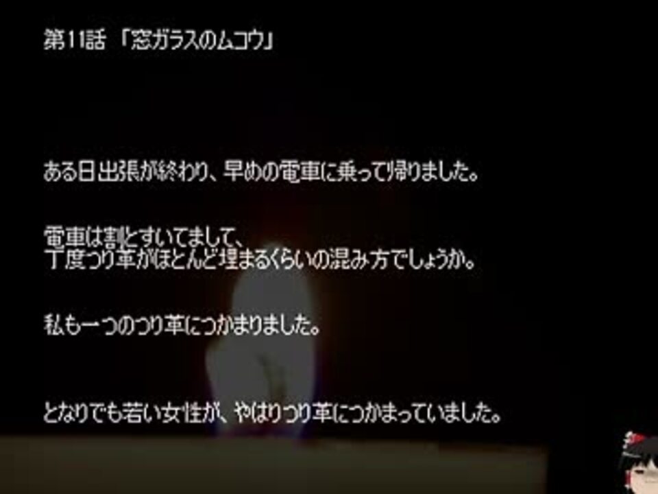 我が家のゆっくりが、オカ板の百物語(2006年7月22日開催)から読んでくれました。<br />本シリーズは話を選定しておりませんが、一部文章を校正してあります。<br /><br />第11話:<a href="#" class="seekTime" data-seekTime="00:00" onclick="seekNicoPlayer('#00:00'); return false;">#00:00</a> 第12話:<a href="#" class="seekTime" data-seekTime="04:18" onclick="seekNicoPlayer('#04:18'); return false;">#04:18</a> 第13話:<a href="#" class="seekTime" data-seekTime="08:05" onclick="seekNicoPlayer('#08:05'); return false;">#08:05</a> <br /><br />人によっては残酷と感じる表現が含まれる場合がありますので、<br />お気に召されないお話があった場合は、飛ばしてご視聴下さい。<br /><br />自動で次の動画に移動するように設定してあります。<br />(最新の動画のみ、最初の動画に移動します。)<br />ループが嫌な方は、お手数なのですが終わり際で停止ボタンを<br />押すようにして下さい。<br /><br />バックナンバー>><a href="https://www.nicovideo.jp/mylist/42927813" target="_blank" rel="noopener">mylist/42927813</a><br />別シリーズ>><a href="https://www.nicovideo.jp/mylist/35018789" target="_blank" rel="noopener">mylist/35018789</a><br />使用素材>><a href="https://commons.nicovideo.jp/works/nc40363" target="_blank" rel="noopener">nc40363</a>、<a href="https://commons.nicovideo.jp/works/nc91418" target="_blank" rel="noopener">nc91418</a>
