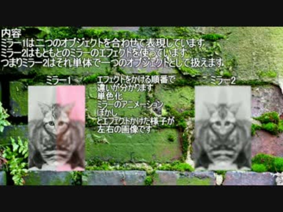 ミラーエフェクトを斜めからでもかけられるスクリプトです。<br>以下からダウンロードしてください<br><u><a href="https://hazumurhythm.com/a/h4Z/" target="_blank" rel="noopener nofollow">https://hazumurhythm.com/a/h4Z/</a></u><br><br><br>Aviutl関連-><a href="https://www.nicovideo.jp/mylist/41237168" target="_blank" rel="noopener">mylist/41237168</a><br>MAD関連-><a href="https://www.nicovideo.jp/mylist/39391564" target="_blank" rel="noopener">mylist/39391564</a>