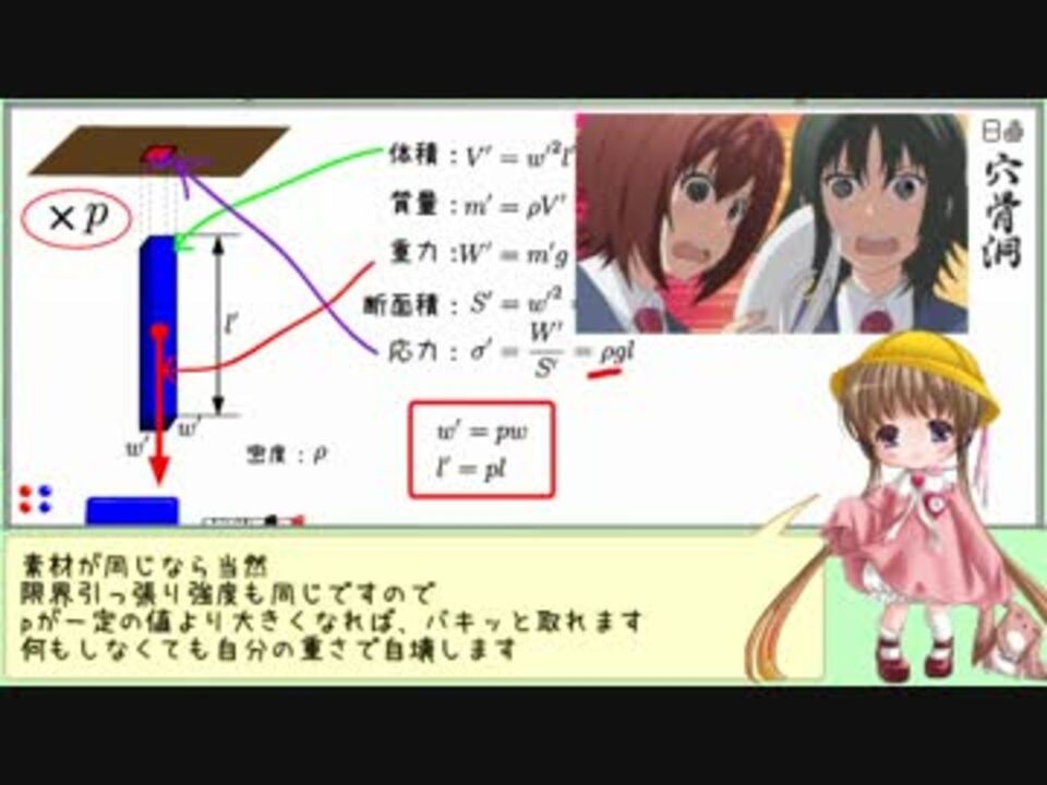 早くおっきくなりたいな! ←その必要はないわ<br /><br />主なトピック:物理学基礎、構造力学<br /><br />数式でpが抜けてたので強引に投コメで入れ込みました。ご指摘ありがとうございます<br /><br />「月読アイの理系なお話」シリーズ:<a href="https://www.nicovideo.jp/mylist/42833638" target="_blank" rel="noopener">mylist/42833638</a><br /> 次回『でっかいちっちゃい力学 おまけ』:<a href="https://www.nicovideo.jp/watch/sm23831152" class="watch">sm23831152</a><br /> 前回『距離ってなに? [実務編]』:<a href="https://www.nicovideo.jp/watch/sm23615316" class="watch">sm23615316</a>