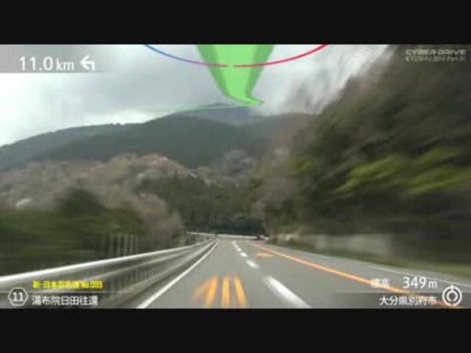 <font size="4"><b>大分空港を出発し別府温泉郷を駆け抜けます!</b></font><br />CYBER DRIVEシリーズ第4弾では満開の桜と南国の風を求め九州地方4県を巡る3泊4日分の車窓を、引き続き洗練された編集とともにお届けいたします。どうぞお楽しみください。<br /><br />□ 1日目は天候に恵まれませんでしたが,九重連山や阿蘇,高千穂峡などをめぐります。<br />□ 画面上方のラインは進行方向,リングは方位を表します(赤=N)。<br />□ ルート案内および距離表示はGPS位置情報に基づいているため実際とは異なる場合があります。<br /><br /><font size="3">予告編 >> <a href="https://www.nicovideo.jp/watch/sm23585177" class="watch">sm23585177</a> | PART2 >> <a href="https://www.nicovideo.jp/watch/sm23837046" class="watch">sm23837046</a></font><br />ブロマガ (撮影機材・編集技術紹介) >> <a href="https://ch.nicovideo.jp/acrolein" target="_blank" rel="noopener">ch.nicovideo.jp/acrolein</a><br />製作動画マイリスト >> <a href="https://www.nicovideo.jp/mylist/30462391" target="_blank" rel="noopener">mylist/30462391</a><br />Twitter >> @Acrolein56