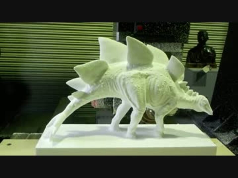 ども、hisa子。です。EPS材600x200x600mmから、ステゴサウルスをNCで削り出してみた。皮膚を削り出すのに時間がかかり、NC加工時間は12時間でした。後日、鋳造の様子をうpします。アルミ化 <a href="https://www.nicovideo.jp/watch/sm23811326" class="watch">sm23811326</a>
