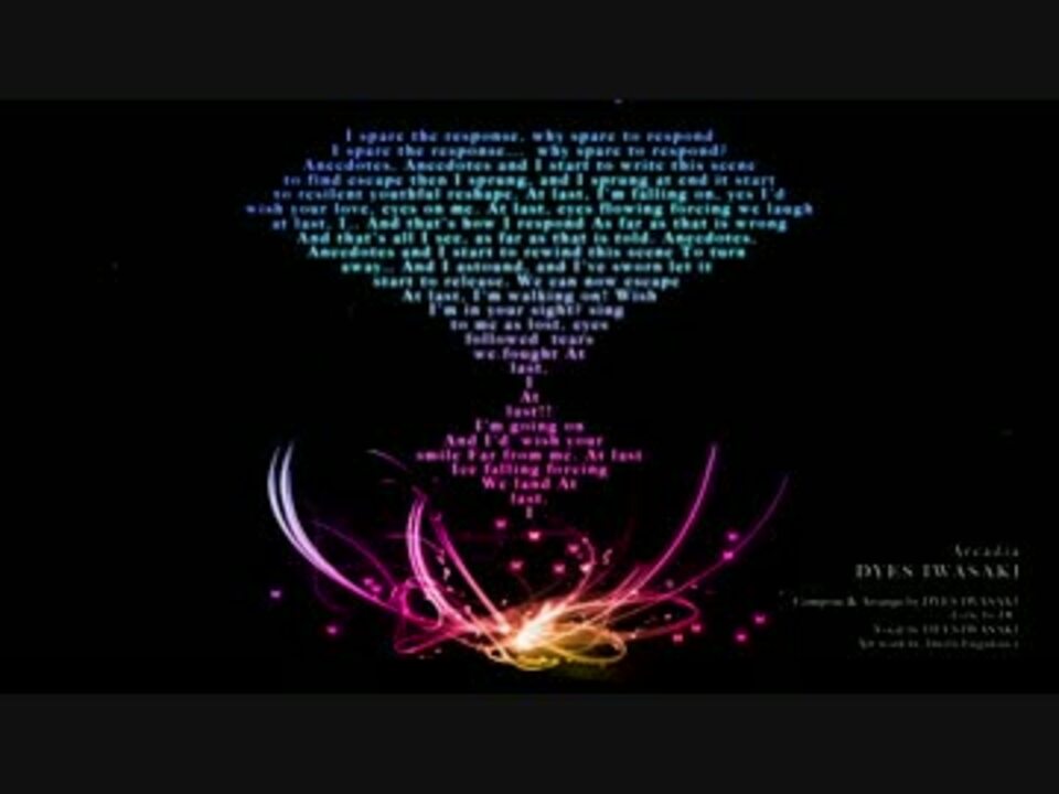 DYES IWASAKIです!<br />Arcadia[原曲→<a href="https://www.nicovideo.jp/watch/sm23769692" class="watch">sm23769692</a>]を僕が歌ってみたソロverです。<br /><br />この曲とは全く関係ないですが、<br />2014.7.19に主催でライブイベントを開催するので<br />是非遊びに来てください♪<br /><br /><b>FAKE TYPE."FAKE BOX" Release Party!!</b><br /><br />詳細はこちら→<a href="http://www.faketype.net/" target="_blank" rel="noopener nofollow">http://www.faketype.net/</a><br /><br /><br />Music/Vocal: DYES IWASAKI <a href="https://www.nicovideo.jp/mylist/18908050" target="_blank" rel="noopener">mylist/18908050</a> @Dyes_Iwasaki<br />Lyrics: DC <a href="https://www.nicovideo.jp/mylist/4342592" target="_blank" rel="noopener">mylist/4342592</a><br />Art Work:imoru fugukawa<br />Encode: 野良いぬ <a href="https://www.nicovideo.jp/mylist/29464021" target="_blank" rel="noopener">mylist/29464021</a><br /><br />前作→<a href="https://www.nicovideo.jp/watch/sm23372663" class="watch">sm23372663</a>