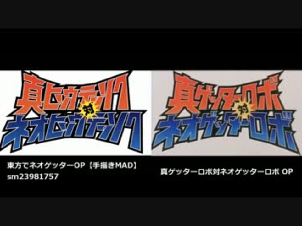 東方でネオゲッターOPがすばらしかったので比較させてもらいました。<br>ひこすけさんのニコ童祭参加作品は毎回楽しみにしています。<br><br><お借りした作品><br>東方でネオゲッターOP【手描きMAD】 → <a href="https://www.nicovideo.jp/watch/sm23981757" class="watch">sm23981757</a><br><br>比較動画マイリス → <span style="color: #006699; font-size: 13px;"><a href="https://www.nicovideo.jp/mylist/66771728" target="_blank" rel="noopener">mylist/66771728</a></span><br><br>【追記】ひこすけさんにリンクを張って頂きました。ありがとうございます!<br>【追記2】土亭おいなりさん、iz@knsさん、ハクトさん、ナウなヤングさん、粉砕するものさん、広告ありがとうございます!