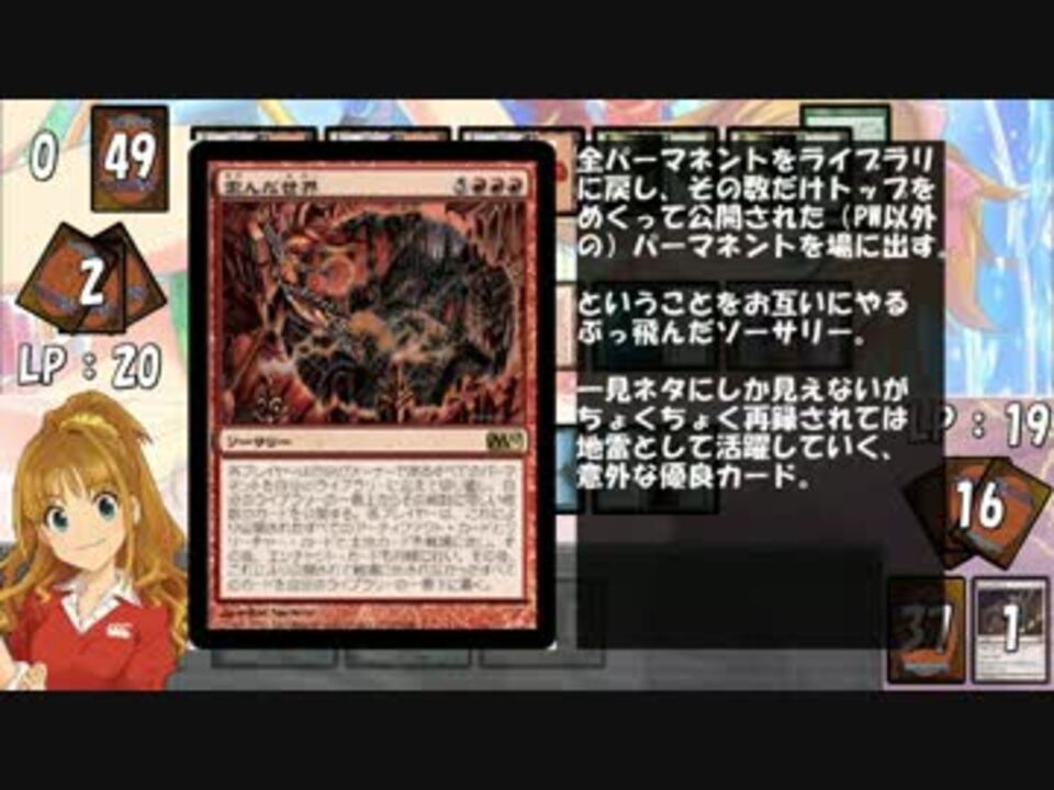 モダンカジュアル一本。パーマネント並べたいデッキvsパーマネント並ばせたいデッキ。<br />下側のデッキ、元は花を手入れするえっちな巫女さんデッキっていうデッキ名だったんですが、<br />花の手入れ要素もえっちな巫女さん要素も抜けて禍々しい何かになりました。<br /><br />仕様通りにデッキが完成したことない気がしますが、デッキも物語もプロット通りにできたら<br />凡作だっていうし、多少はね?<br /><br /><a href="https://www.nicovideo.jp/watch/sm23942604" class="watch">sm23942604</a><前 次><a href="https://www.nicovideo.jp/watch/sm24100824" class="watch">sm24100824</a> 一覧 <a href="https://www.nicovideo.jp/mylist/44106043" target="_blank" rel="noopener">mylist/44106043</a>