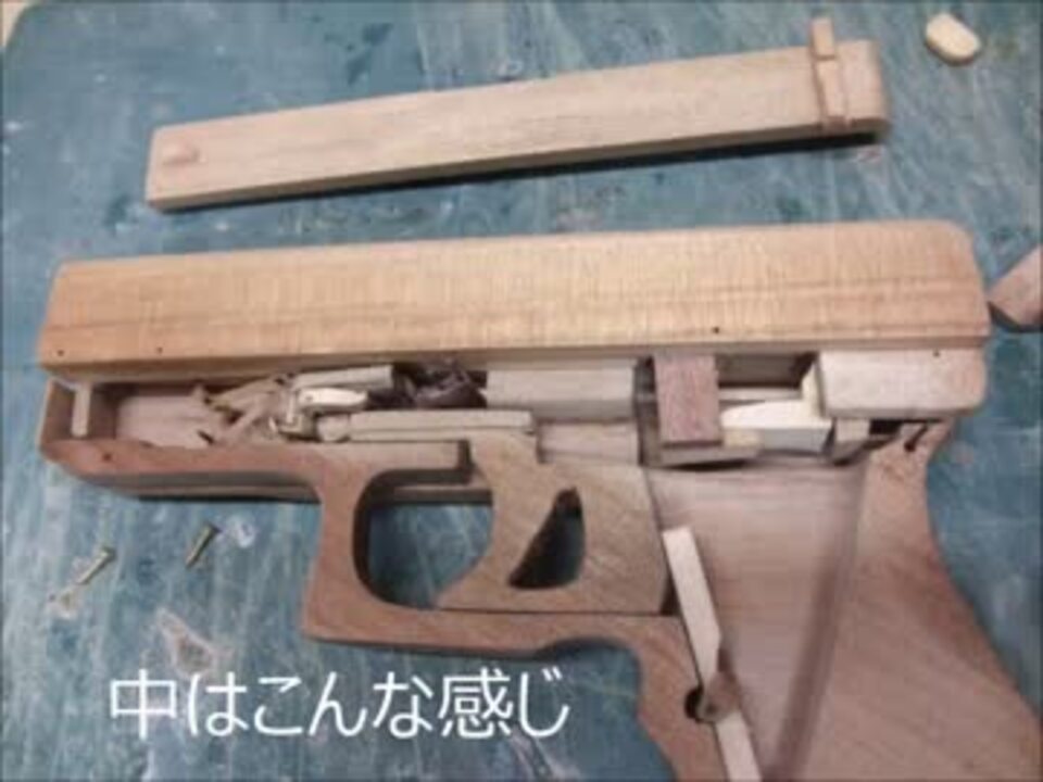ハンドガンタイプでフルオートのブローバックする輪ゴム銃を作ってみました<br /><br />発射する輪ゴムをバレルの中に隠したので一目では輪ゴム銃だと判らないと思います。木製モデルガンみたい<br /><br />マシンガンの用に連射するんです。<br />初めてフルオート連射が成功した瞬間、なぜか大笑いしてしまいましたよ<br /><br />セミオートとフルオートの切り替え構造にかなり苦労しました。<br /><br /><font color="red">新作(アニメ アップルシードに登場する銃:<a href="https://www.nicovideo.jp/watch/sm24657202" class="watch">sm24657202</a>)</font><br /><br />SIG P220:<a href="https://www.nicovideo.jp/watch/sm24549294" class="watch">sm24549294</a><br />前回作品(リボルーバータイプの輪ゴム銃を作ってみた:<a href="https://www.nicovideo.jp/watch/sm24058809" class="watch">sm24058809</a>)<br />過去の作品(<a href="https://www.nicovideo.jp/watch/sm23813383" class="watch">sm23813383</a> : <a href="https://www.nicovideo.jp/watch/sm23701622" class="watch">sm23701622</a> : <a href="https://www.nicovideo.jp/watch/sm23654350" class="watch">sm23654350</a> : <a href="https://www.nicovideo.jp/watch/sm23636559" class="watch">sm23636559</a> : <a href="https://www.nicovideo.jp/watch/sm23630529" class="watch">sm23630529</a>)<br /><br /><br />