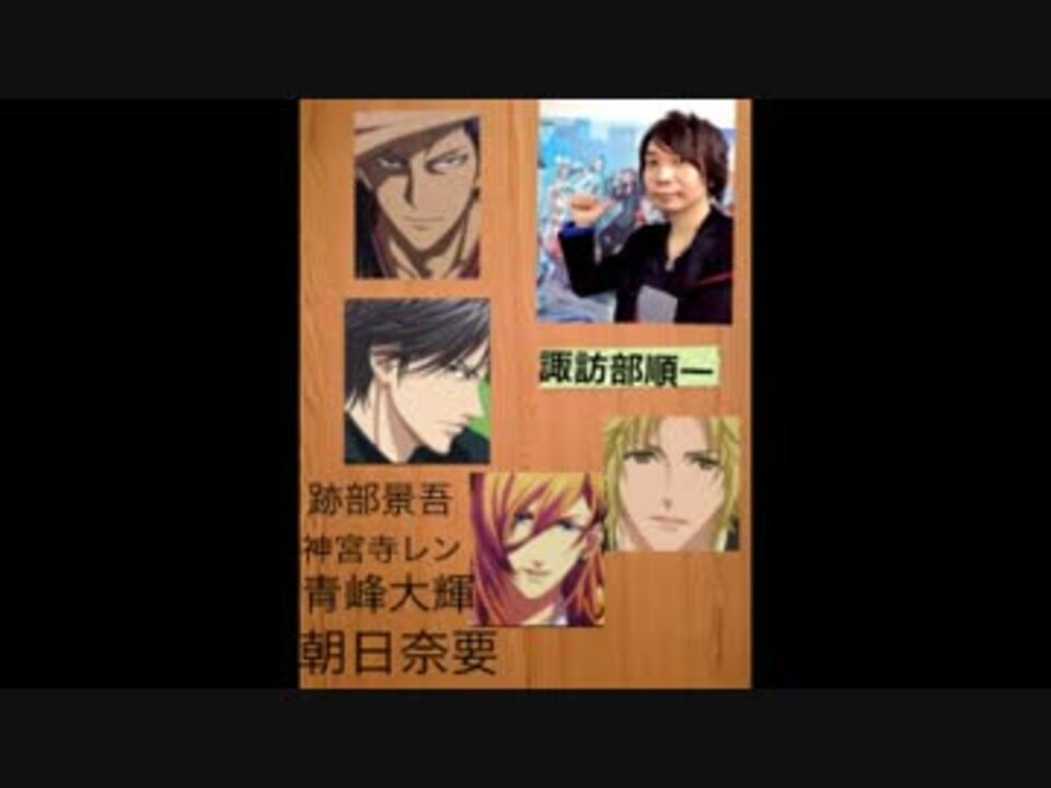 前にキャラ投票をやってから1年以上がたちました。 ちょっとやり方を変えて再び行います。 主が独断と偏見で選んだキャラ4人のみが対象です。必ずそれぞれ17秒以内に画面の左下に書いてあるとおりの名前のみコメントしてください。それ以外はカウントされません。及川徹の漢字が間違っていますが「徹」の方でコメントをお願いします 逢坂良太/櫻井孝宏/島﨑信長/花江夏樹/松岡禎丞/浅沼晋太郎/細谷佳正/小野友樹/羽多野渉/岡本信彦/森田成一/浪川大輔/鳥海浩輔/内山昂輝/梶裕貴/KENN/保志総一朗/前野智昭/柿原徹也/平川大輔/石川界人/小野賢章/神谷浩史/鈴木達央/寺島拓篤/日野聡/入野自由/斉藤壮馬/吉野裕行/中村悠一/立花慎之介/諏訪部順一/宮田幸季 他 ※投票はしめきりました