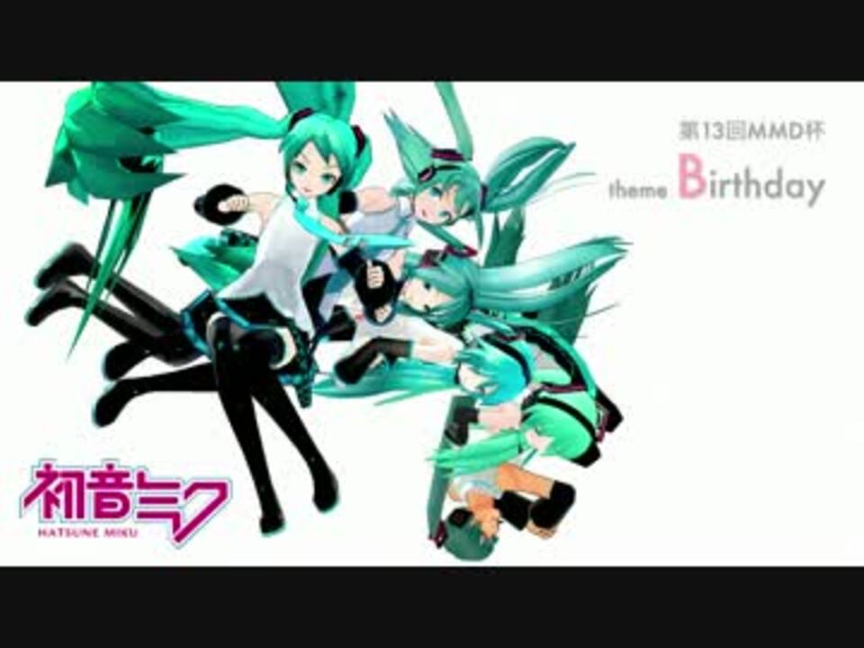 <font color="#33ffcc">■</font>「幸せダヨー お返しするヨー」<br /> 私の持つミクニウムを凝縮して作りました。<br /> どうしてもこの投稿時間に間に合わせたくて、夜通し吶喊で作りました。<br /> エンコード完了したのが8時23分とギリギリでしたが、間に合って良かった。<br /> ミクさん誕生日おめでとう! そして全てのクリエイター様に39!!<br /> X-X様、八十八様、ちろ様、広告頂きどうもありがとうございます。<br /><br />■【theme:B】 MMD杯公式サイト=<a href="http://mmdcup.org/" target="_blank" rel="noopener nofollow">http://mmdcup.org/</a><br /> 本選公式1=<a href="https://www.nicovideo.jp/mylist/43699671" target="_blank" rel="noopener">mylist/43699671</a> 本選公式2=<a href="https://www.nicovideo.jp/mylist/43699672" target="_blank" rel="noopener">mylist/43699672</a><br /><br /><font color="efefef">■</font>映像:1280x720 HD, 30fps, 2.3Mbps.<br /> 音楽:ローリンガール & 39<br /> 制作:No.17 <a href="https://www.nicovideo.jp/mylist/36465839" target="_blank" rel="noopener">mylist/36465839</a><br />