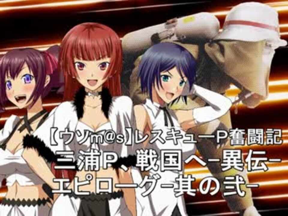 遼介Pです。歌姫☆DREAM次話の制作中にレスキューP戦国編異伝の続きをラリーンと思いついてしまったので作っちゃいました。<br>異伝エピローグ(前話)⇒<a href="https://www.nicovideo.jp/watch/sm23725805" class="watch">sm23725805</a><br>三浦P戦国へ!⇒<a href="https://www.nicovideo.jp/mylist/42832905" target="_blank" rel="noopener">mylist/42832905</a><br>レスキューP奮闘記【完結】⇒<a href="https://www.nicovideo.jp/mylist/24566410" target="_blank" rel="noopener">mylist/24566410</a><br>遼介P短編NovelsM@ster⇒<a href="https://www.nicovideo.jp/mylist/35716734" target="_blank" rel="noopener">mylist/35716734</a><br>雪月花と魔王エンジェル【完結】⇒<a href="https://www.nicovideo.jp/mylist/35038745" target="_blank" rel="noopener">mylist/35038745</a><br>【iM@S架空戦記シリーズ】im@s天地燃ゆ【完結】⇒<a href="https://www.nicovideo.jp/mylist/21351596" target="_blank" rel="noopener">mylist/21351596</a><br>・のほほん日本様、それっきりP様、宣伝ありがとうございました!