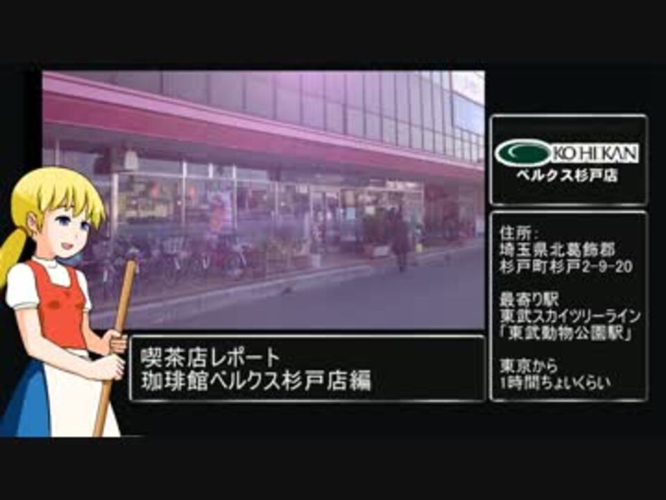 喫茶店好きが高じて作った、地元店「珈琲館ベルクス杉戸店編」のレポ動画です。レイアウトはbiim兄貴発明の「biimシステム」を使わせていただきました。 <a href="https://www.nicovideo.jp/mylist/10596420" target="_blank" rel="noopener">mylist/10596420</a><br /><br />(次)喫茶店レポ2 東京・浅草「アンヂェラス」:<a href="https://www.nicovideo.jp/watch/sm24428604" class="watch">sm24428604</a><br /><br />(追記)ハム喫茶兄貴、あお兄貴、イチノセ兄貴、宣伝アリシャス!