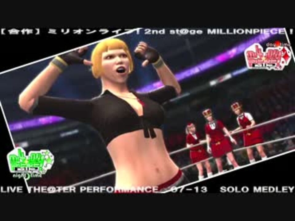 <font size=6>みなさーん!みりっほー!<br /></font>今回のCMでは、ミリマスLTP合作第2弾<b>「ミリオンライブ!2nd st@ge MILLIONPIECE!」</b>に参戦するプロデューサーさんを紹介します!<br /><br />【合作】ミリオンライブ! 2nd st@ge MILLIONPIECE!<br />day time→<a href="https://www.nicovideo.jp/watch/sm24561543" class="watch">sm24561543</a><br />night time→<a href="https://www.nicovideo.jp/watch/sm24562455" class="watch">sm24562455</a><br />Curtain call→<a href="https://www.nicovideo.jp/watch/sm24563196" class="watch">sm24563196</a><br /><br />謎の新人ニコマスP「VJ LES-PAUL」さんの第1弾CM:<a href="https://www.nicovideo.jp/watch/sm24438367" class="watch">sm24438367</a><br />マリンカリンPと大作Pの合作第3弾CM:<a href="https://www.nicovideo.jp/watch/sm24510289" class="watch">sm24510289</a><br />ランプキンPの第4弾CM:<a href="https://www.nicovideo.jp/watch/sm24532278" class="watch">sm24532278</a><br />