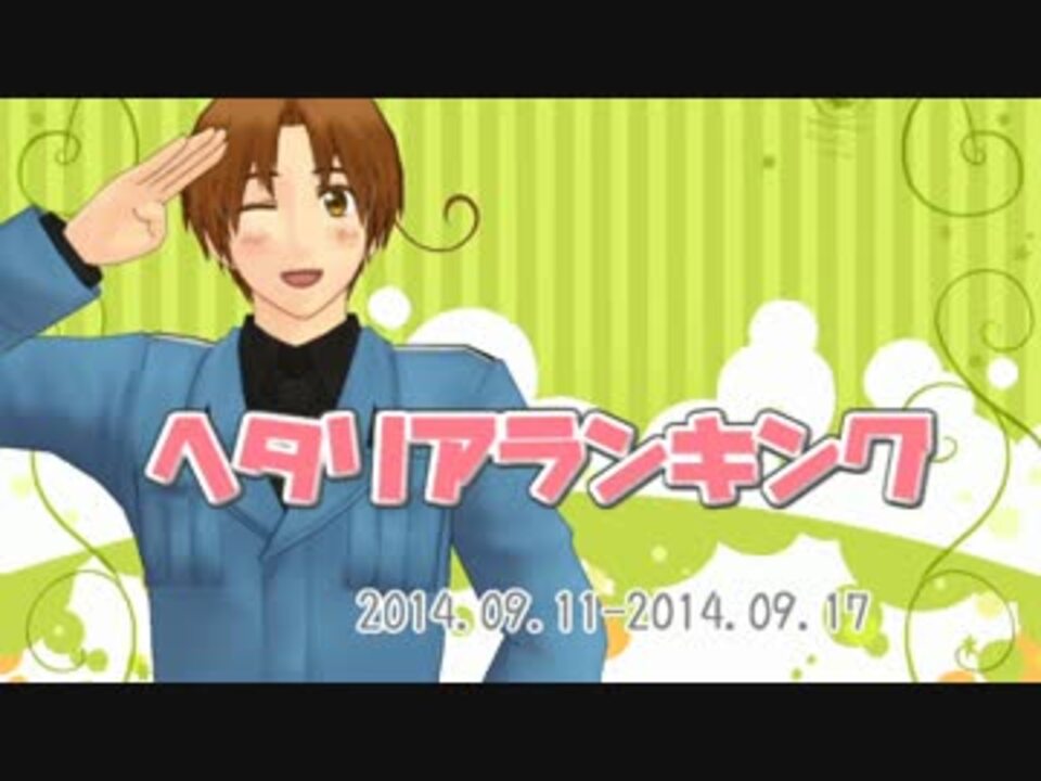 続きましたので、№1に変更しました。<br /><br />♥9月11日~9月17日の一週間を9月20日に集計しています。<br />♡タグに「AxisPowersヘタリア」が登録されている動画です。MMD、手描き、歌ってみた、ゲーム系、他が入っています。<br />♥抽出場所はダンスモーションはサビの部分、それ以外は1分あたりです<br />♥次→ <a href="https://www.nicovideo.jp/watch/sm24562008" class="watch">sm24562008</a><br />♡動画内では、敬称略にて失礼致します。<br />追記:タイトルについてコメントを頂きましたので、修正しました。ありがとうございます。<br />追記:しぐま。様、世界順位様、提供ありがとうございました!