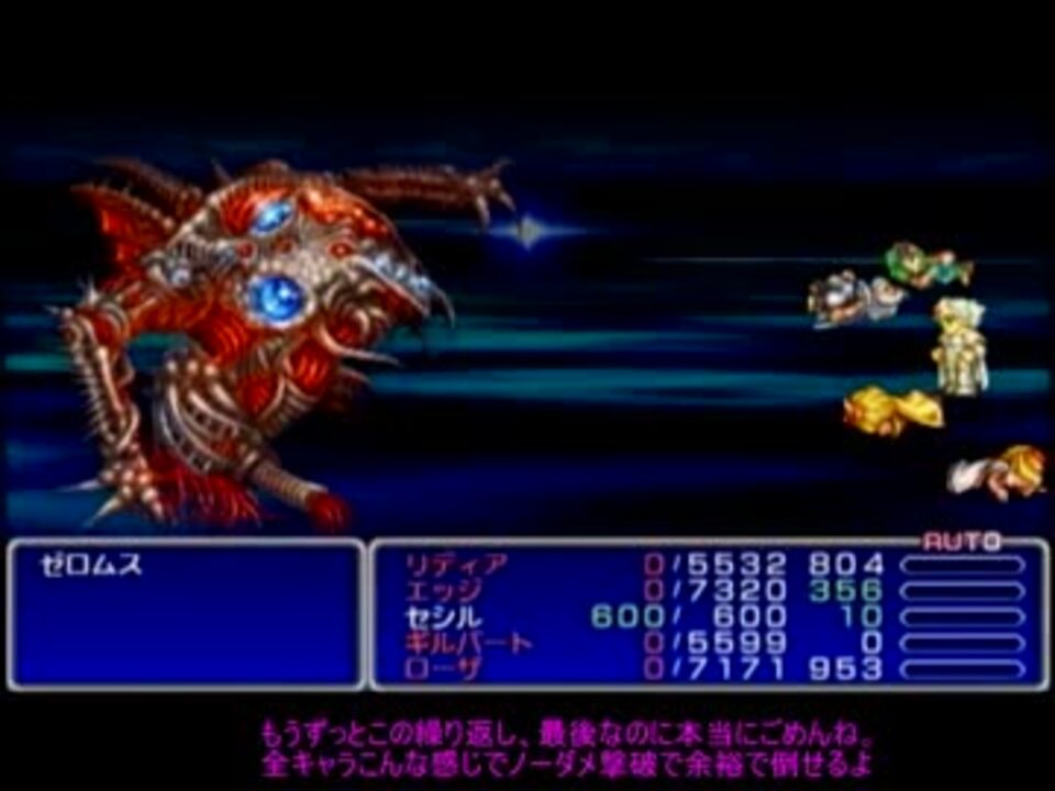 ご視聴ありがとうございます!<br />なるべく低レベルソロ、りんご系禁止(上限レベルは30)<br />動画でチャージマン研を確実に使用<br />今回はセシルレベル1でゼロムス<br />武器ボスはめんどくさいんDA<br />次回⇒<a href="https://www.nicovideo.jp/watch/sm24605246" class="watch">sm24605246</a><br />前回⇒<a href="https://www.nicovideo.jp/watch/sm23066847" class="watch">sm23066847</a> <br />FF7⇒<a href="https://www.nicovideo.jp/mylist/24475663" target="_blank" rel="noopener">mylist/24475663</a> FF4⇒<a href="https://www.nicovideo.jp/mylist/31905690" target="_blank" rel="noopener">mylist/31905690</a><br />ツブヤイター 動画更新情報してるお!<br /><a href="https://twitter.com/dhuerunahito" target="_blank" rel="noopener nofollow">https://twitter.com/dhuerunahito</a>