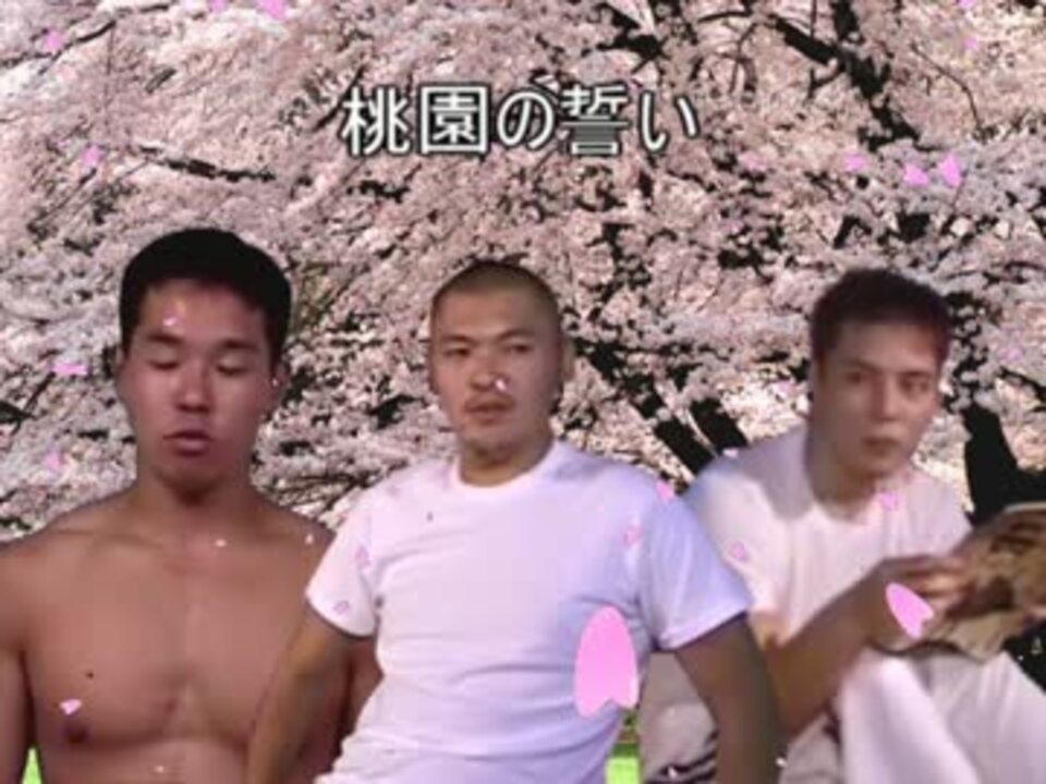 何でまた上がったんですかね…<br />桃園の誓い(とうえんのちかい)は、桃園結義(とうえんけつぎ)とも称され、『三国志演義』などの序盤に登場する劉備・関羽・張飛の3人が、宴会にて義兄弟(長兄・劉備、次兄・関羽、弟・張飛)となる誓いを結び、生死を共にする宣言を行ったという逸話のことである。<br />ウィキペディアはホモ<br /><br />宣伝兄貴たち、ありがと茄子!