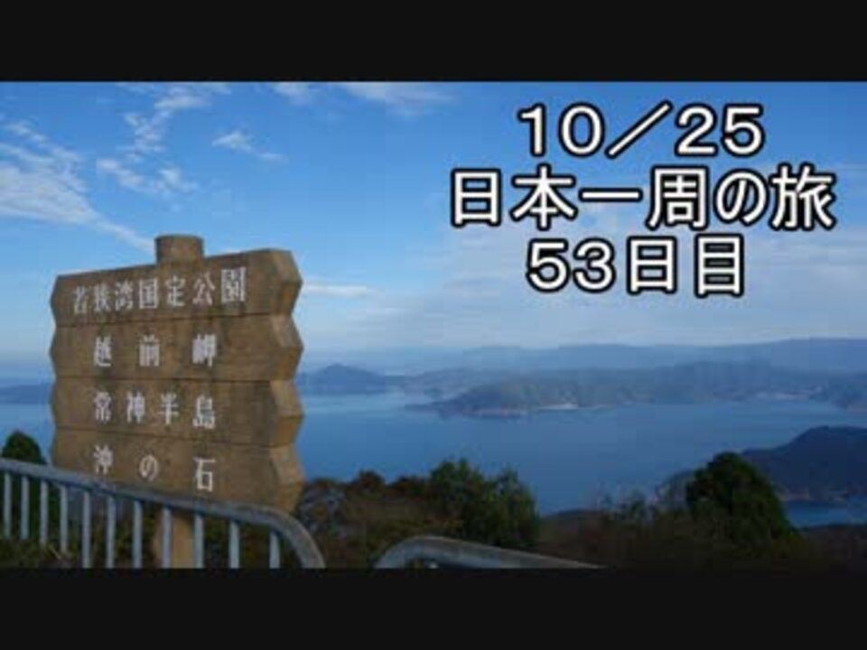どうも、こんにちは名前が無いものでございます。<br />この動画はバイクで日本一周をほぼリアルタイム(?)で動画を投稿しています。<br />基本クエスト:日本の海岸線沿いを反時計回りに一周。<br />サブクエスト:こちらの動画(<a href="https://www.nicovideo.jp/watch/sm24201606" class="watch">sm24201606</a>)の中で自慢された場所に行く事。<br />※サブクエストの目標地点は、上記の動画で教えていただけると幸いです。又、ルートの都合上いけない事も多々ありますので御了承下さい。<br /><br />次⇒<a href="https://www.nicovideo.jp/watch/sm24804977" class="watch">sm24804977</a> 1日目⇒<a href="https://www.nicovideo.jp/watch/sm24394612" class="watch">sm24394612</a><br />旅マイリスト→<a href="https://www.nicovideo.jp/mylist/44684378" target="_blank" rel="noopener">mylist/44684378</a> これまで投稿したもの→<a href="https://www.nicovideo.jp/mylist/32107422" target="_blank" rel="noopener">mylist/32107422</a><br />進捗状況はツイッターにて⇒<a href="https://twitter.com/namaeganaimono" target="_blank" rel="noopener nofollow">https://twitter.com/namaeganaimono</a><br />コミュニティ⇒co2141067<br /><br />おっさんのボヤキ:半島の恐怖…
