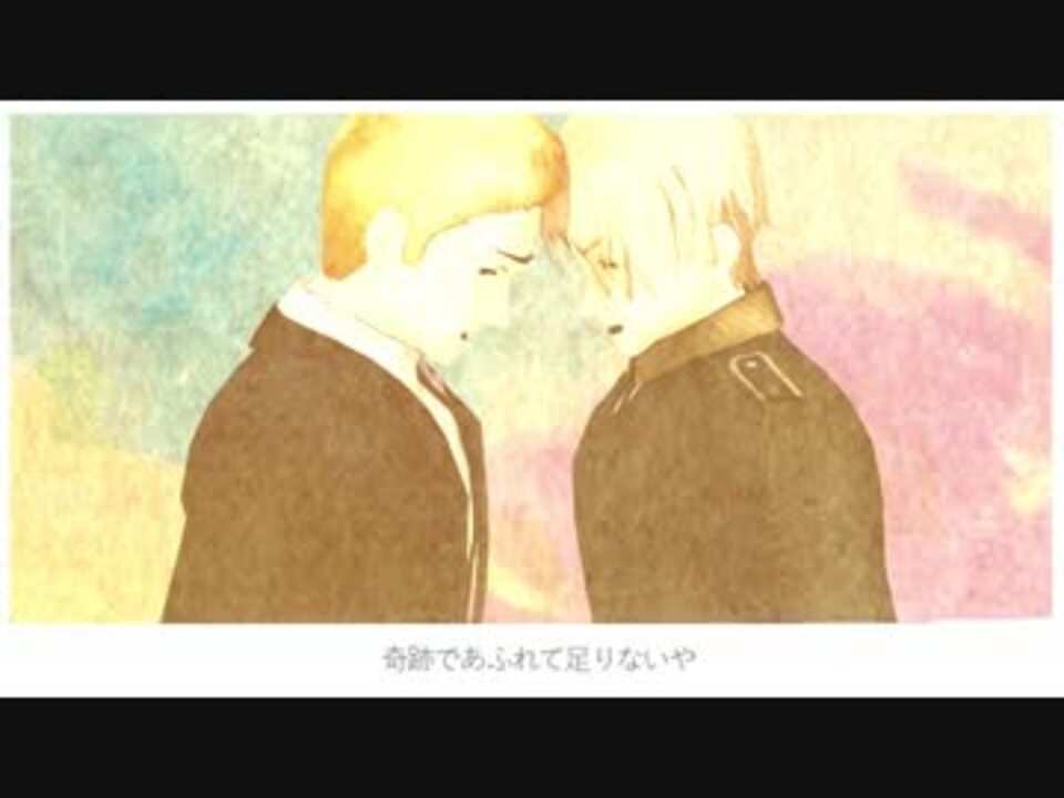 <b><font size="4">軍帽→東西分断中<br />通常軍服→壁崩壊直後<br />コート&スーツ→再統一後</font></b><br />という設定で見てください。分かりにくくて申し訳ありません...<br /><br />壁崩壊25周年おめでとうございます!(*´◒`)<br />めでたい!めでたい!<br /><br />※クレジットは動画内にて(敬称略) ありがとうございました!<br />※腐向け動画ではありません。コメントの配慮をお願いします。<br />※比較動画はお止めください。<br /><br />追記*たかさん宣伝ありがとうございました!<br />解説のようなもの <a href="https://ch.nicovideo.jp/article/ar425529" target="_blank" rel="noopener">ar425529</a><br /><br />■<a href="https://www.nicovideo.jp/mylist/39500104" target="_blank" rel="noopener">mylist/39500104</a>