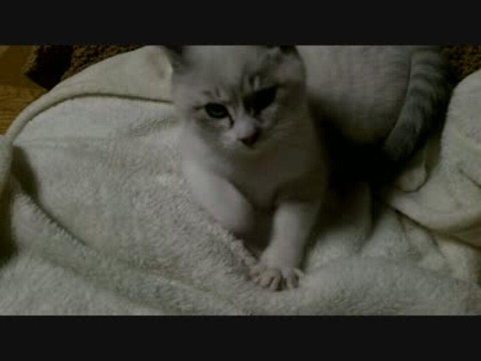 「実家の車庫で保護した子猫<a href="https://www.nicovideo.jp/mylist/45727827" target="_blank" rel="noopener">mylist/45727827</a>」シロ(狸顔♂)トラ(♂)トラと離れ離れになり寂しそうにしていたシロ。初日はずっと傍にいましたが、今では1人遊び、いや、一人大運動会ができるほど元気です。電気を消して主が寝ようとすると直ぐに隣に来て静かに寝てくれます。
