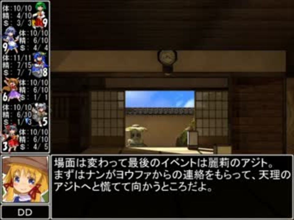 第五話『Night walkers』<br /><br />イベントが終わったのでイベントのターン<br />すまんがもうちょっとだけ続くんじゃ<br />行動するのはもうちょっと待っておくれ<br /><br />前回は誤字の多発で失礼を致しました<br />ヨウズーはまだ死んでないので安心してね!<br />あとうつぶせとあおむけとか、逆の意味の言葉はよく間違えます<br /><br />>ダイレクトに殺しに来てるじゃねーか!<br />恋愛亜侠が怖いなら恋愛亜侠を殺せばいいじゃない すわこ<br /><br /><a href="https://www.nicovideo.jp/watch/sm24956038" class="watch">sm24956038</a> ← 前 | <a href="https://www.nicovideo.jp/mylist/36414179" target="_blank" rel="noopener">mylist/36414179</a> | 次 → <a href="https://www.nicovideo.jp/watch/sm24977138" class="watch">sm24977138</a><br /><br />他の投稿作品 : 東方壊異譚[<a href="https://www.nicovideo.jp/mylist/10254312" target="_blank" rel="noopener">mylist/10254312</a>] / 初心者巫女のSW[<a href="https://www.nicovideo.jp/mylist/34426701" target="_blank" rel="noopener">mylist/34426701</a>]