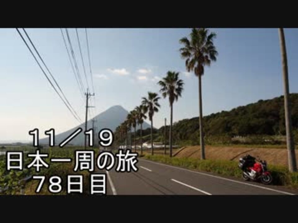 どうも、こんにちは名前が無いものでございます。<br />この動画はバイクで日本一周をほぼリアルタイム(?)で動画を投稿しています。<br />基本クエスト:日本の海岸線沿いを反時計回りに一周。<br />サブクエスト:こちらの動画(<a href="https://www.nicovideo.jp/watch/sm24201606" class="watch">sm24201606</a>)の中で自慢された場所に行く事。<br />※サブクエストの目標地点は、上記の動画で教えていただけると幸いです。又、ルートの都合上いけない事も多々ありますので御了承下さい。<br /><br />次⇒25日公開(<a href="https://www.nicovideo.jp/watch/sm24973317" class="watch">sm24973317</a>) 1日目⇒<a href="https://www.nicovideo.jp/watch/sm24394612" class="watch">sm24394612</a><br />旅マリスト→<a href="https://www.nicovideo.jp/mylist/44684378" target="_blank" rel="noopener">mylist/44684378</a> これまで投稿したもの→<a href="https://www.nicovideo.jp/mylist/32107422" target="_blank" rel="noopener">mylist/32107422</a><br />進捗状況はツイッターにて⇒<a href="https://twitter.com/namaeganaimono" target="_blank" rel="noopener nofollow">https://twitter.com/namaeganaimono</a><br />コミュニティ⇒co2141067<br /><br />おっさんのボヤキ:見せてやるぜ…これがフラグの立て方だ…!!