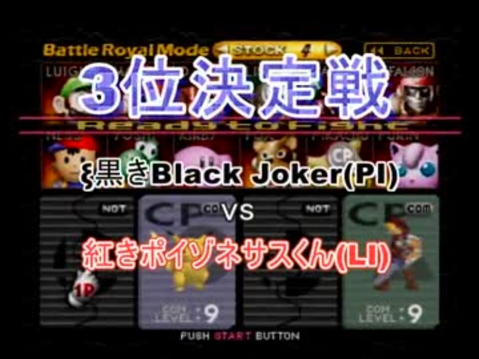 <b>3位決定戦</b>:ξ黒きBlack Joker(PI) VS 紅きポイゾネサスくん(LI)<br /><b>最弱決定戦</b>:ヨシオ君(PU)・Фデスエンペラー(FA)・♀幻のギルティースMkⅡ(FO)・世界のrekuiemu(KI)<br /><br /><font color="#0000ff"><u>※64スマブラCPUトナメ実況のwikiができた模様</u>→</font> <a href="https://wiki3.jp/cpu_64" target="_blank" rel="noopener nofollow">https://wiki3.jp/cpu_64</a><br /><br /><font size="5"><font color="#ff0000">次→</font></font>【<a href="https://www.nicovideo.jp/watch/sm25349962" class="watch">sm25349962</a>】<br /><br />part6→<a href="https://www.nicovideo.jp/watch/sm24201678" class="watch">sm24201678</a><br />part1→<a href="https://www.nicovideo.jp/watch/sm23906204" class="watch">sm23906204</a><br /><br />マイリスト【<a href="https://www.nicovideo.jp/mylist/27365529" target="_blank" rel="noopener">mylist/27365529</a>】<br />その他シリーズ【<a href="https://www.nicovideo.jp/mylist/12965027" target="_blank" rel="noopener">mylist/12965027</a>】<br /><br />YouTube【<a href="http://urx.nu/9ti8】" target="_blank" rel="noopener nofollow">http://urx.nu/9ti8】</a><br />Twitter【<a href="http://urx.nu/9tiO】" target="_blank" rel="noopener nofollow">http://urx.nu/9tiO】</a><br />ブログ【<a href="http://urx.nu/9tig】" target="_blank" rel="noopener nofollow">http://urx.nu/9tig】</a><br />ゲーム 実況プレイ動画 実況動画