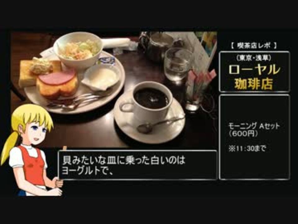 東京・浅草の激渋純喫茶「ローヤル珈琲店」様(東京都台東区浅草1-39-7)にお邪魔しました。biimシステムに戻したら動画作りやすいナリィ… あと自分で「牛帝兄貴」タグを入れるのも少し微妙な気もしますが、せっかく大百科を作っていただいたので入れさせていただきます。<br />マイリスト:<a href="https://www.nicovideo.jp/mylist/10596420" target="_blank" rel="noopener">mylist/10596420</a><br /><br />(次)喫茶店レポ6 「珈琲屋OB・加須店」:<a href="https://www.nicovideo.jp/watch/sm25223255" class="watch">sm25223255</a><br />(前)神社レポ「鷲宮神社」:<a href="https://www.nicovideo.jp/watch/sm24784438" class="watch">sm24784438</a><br /><br />~~~<br />jimiko兄貴(姉貴?)、宣伝アリシャス!<br />