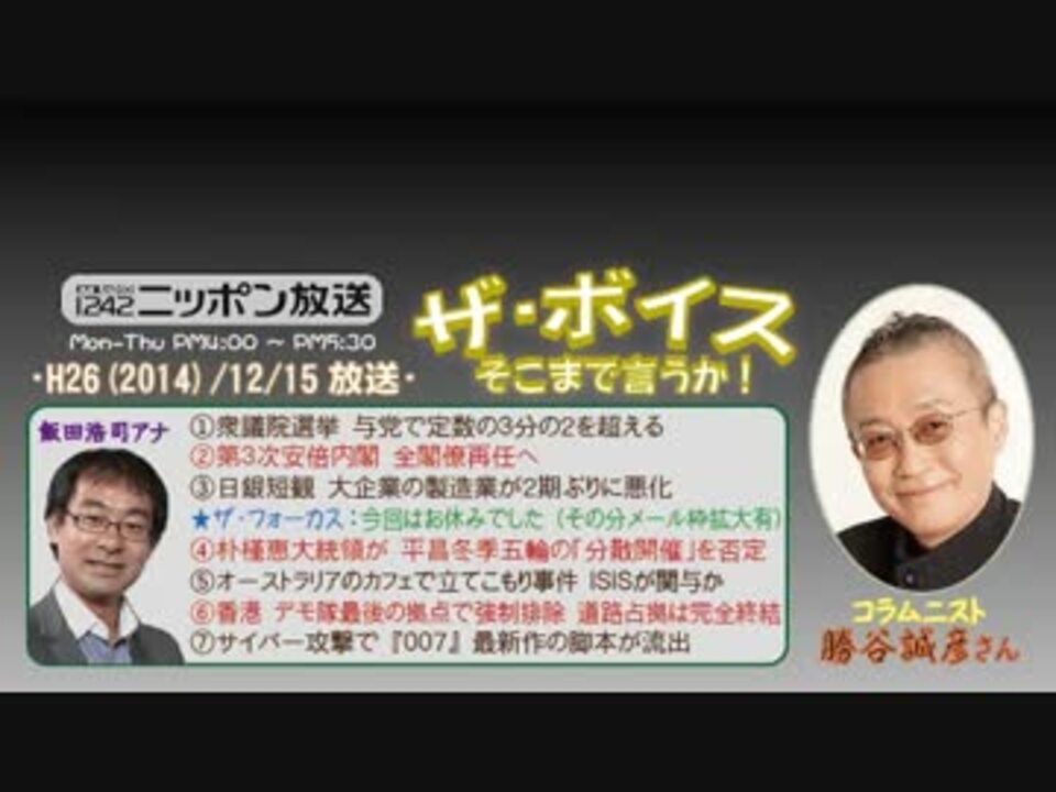 昨日の衆議院選挙の投票率は[52.66%]と、ある程度予想していたとはいえ、本当に「戦後最低」という不名誉な記録を更新してしまいましたねぇ……。<br />「低投票率だったんだから民意が反映されてない!」とか「これこそが政治への不信感の表れですよ!(キリッ」などという、自称有識者たちのご高説()はともかく、「どうせ私が行っても行かなくても変わらないしぃ」と選挙を軽視している方は、今回、飯田アナが仰った『例え政治に無関心でも、政治に無関係で生活はできない』という名言を、しっかりと噛みしめて欲しいものです。<br /><br />~なんて、こうしてこの動画を能動的に視聴されている当事者意識の高い皆さんに言っても、仕方がないんですが(^^;<br />※街ステ飛ばし→ <a href="#" class="seekTime" data-seekTime="37:36" onclick="seekNicoPlayer('#37:36'); return false;">#37:36</a><br />□<a href="https://www.nicovideo.jp/mylist/36340069" target="_blank" rel="noopener">mylist/36340069</a>□<a href="https://www.nicovideo.jp/mylist/41644857" target="_blank" rel="noopener">mylist/41644857</a>