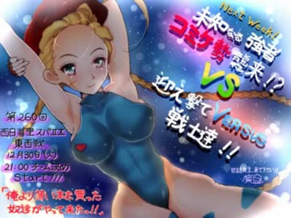 恒例毎週火曜日 スパIIX東西戦!<br />■ストⅢ3rd 東西戦 <a href="https://www.nicovideo.jp/mylist/34680575" target="_blank" rel="noopener">mylist/34680575</a><br />2014/12/23 第259回東西戦は参加者48名。<br />東チーム(1P側):シン@XRY、船橋ガイル@XGU、ふくや魔@XRY、モロ@XZA、田所@XGU、アトミックボーイ@XZA、ぐら@XVE、ねも@XBL、ヒデ@XCH、カトウ@XDJ、はぴば☆雪歩@XCA、てらさん@XRY、yaya@XGU、なかむら@XCA、PECO@SKE、yuu@XGU、あかブラ@XBL、焼鳥@SHA、機械@XGU、ハナシー@XFE、カワシム@XDH、カワマタ@XRY、あべびん@XEH、さそり@XRY<br />西チーム(2P側):<br />東西戦マイリスト 旧<a href="https://www.nicovideo.jp/mylist/16982144" target="_blank" rel="noopener">mylist/16982144</a> 新<a href="https://www.nicovideo.jp/mylist/35480493" target="_blank" rel="noopener">mylist/35480493</a><br /> Twitter: <a href="http://twitter.com/game_versus/" target="_blank" rel="noopener nofollow">http://twitter.com/game_versus/</a> イベント・動画情報等発信中