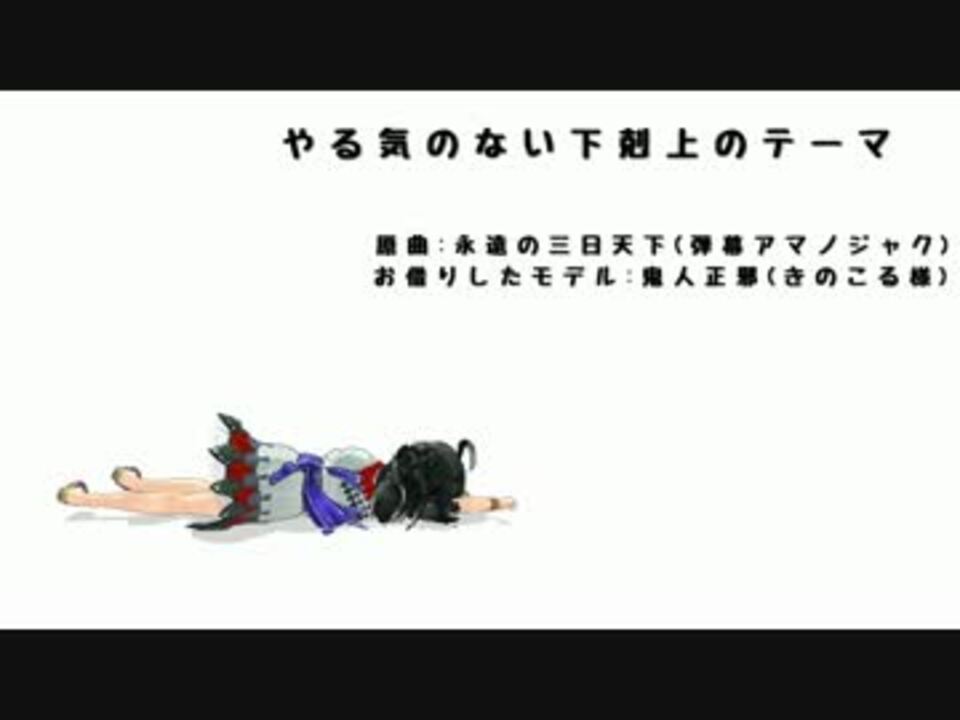 <font size="7"><b>11日目。</font></b><font size="1">あけおめ。</font><br /><br /><br />追記:mp3配布 <a href="https://ch.nicovideo.jp/article/ar691457" target="_blank" rel="noopener">ar691457</a><br /><br />MMD・お借りしたもの<br />鬼人正邪 きのこる様<br />モーションデータ 摩天楼様<br /><br />原曲:永遠の三日天下(弾幕アマノジャク)<br />アレンジ:ちぇあ<br /><br /><a href="https://www.nicovideo.jp/mylist/32635609" target="_blank" rel="noopener">mylist/32635609</a>