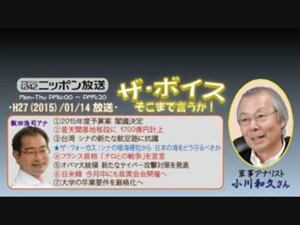 自衛権の個別か集団的か~の議論に代表されるように、小川さんのような軍事に対する普通の感覚をお持ちの方ならば、誰しもが指摘する「日本では国内でしか通用しないガラパゴス軍事議論ばかりしている」という件は、やはり『憲法9条(の第2項)』が諸悪の根源ですよね。<br />どう読んでも軍事力の保持を禁じている中で、どう見ても軍隊でしかない自衛隊を保持するために、四の五のと屁理屈を捏ねまくっているから、全てがややこしくなるわけで。ってまぁ、こういう詭弁を弄するほどに収拾が付かなくなるのは、何も軍事に限った話じゃないですよね(^^;<br /><br />ところで、護憲派の方々は、此度のフランスに対し「話し合いでの解決」を進言しないのでしょうか?w<br />※街ステ飛ばし→<a href="#" class="seekTime" data-seekTime="38:00" onclick="seekNicoPlayer('#38:00'); return false;">#38:00</a><br />□<a href="https://www.nicovideo.jp/mylist/36340069" target="_blank" rel="noopener">mylist/36340069</a>□<a href="https://www.nicovideo.jp/mylist/41644857" target="_blank" rel="noopener">mylist/41644857</a>