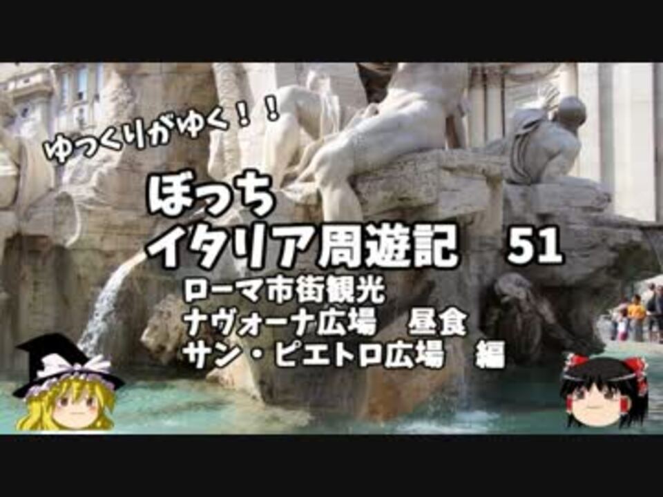 引き続きベタベタな観光地巡りです<br />うぷぬしは田舎暮らしのため、洒落た料理は食べたことがありません<br />エスプレッソ、カプチーノ、ケバブ、ラザニア等、初めて食べるものばかりでした<br /><br /><br />1日目…出発編<br />2~4日目…ヴェネツィア編<br />5~7日目…ミラノ スイス編<br />8~10日目…ローマ 南イタリア編<font color="red">←今ココ(9日目)</font><br />11~12日目…帰路編<br /><br />たくさんのコメントありがとうございます!<br />2月中旬、完結予定 全64+1話で無駄に長いです!<br />旅ブログ→<a href="http://ryotaroo.blog.fc2.com/" target="_blank" rel="noopener nofollow">http://ryotaroo.blog.fc2.com/</a><br /><br /><br /><a href="https://www.nicovideo.jp/watch/sm25339880" class="watch">sm25339880</a>←前回 <font color="red">次回 第52話→<a href="https://www.nicovideo.jp/watch/sm25366143" class="watch">sm25366143</a></font><br />前作→<a href="https://www.nicovideo.jp/mylist/44343854" target="_blank" rel="noopener">mylist/44343854</a><br />今作→<a href="https://www.nicovideo.jp/mylist/45763559" target="_blank" rel="noopener">mylist/45763559</a>