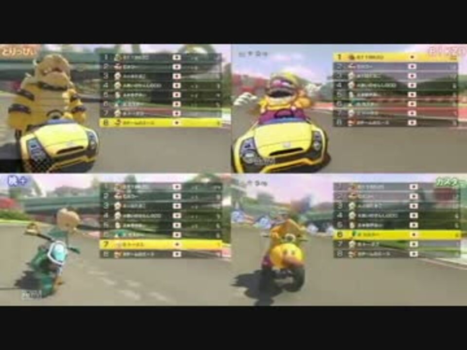 マリカ実況者が8人集まって4人1組のチームを作り<br />スカイプ通話しながら騒ぐ動画です、楽しかった!!<br /><br /><font size="-1">今回AチームのリーダーがはたさこでBチームのリーダーがとりっぴぃです.<br />誰が喋っているか分からないと思ったので字幕を入れている箇所もあります.</font><br /><br /><b>同時投稿Aチーム視点→<a href="https://www.nicovideo.jp/watch/sm25371320" class="watch">sm25371320</a> 2GP目→<a href="https://www.nicovideo.jp/watch/sm25421783" class="watch">sm25421783</a><br /></b><br />Bチーム<br />とりっぴぃ<<a href="https://www.nicovideo.jp/mylist/45790026" target="_blank" rel="noopener">mylist/45790026</a>>@taruu21<br />B!KZO <<a href="https://www.nicovideo.jp/mylist/46671860" target="_blank" rel="noopener">mylist/46671860</a>>@bikkuri_3<br />桃+ <<a href="https://www.nicovideo.jp/mylist/45314141" target="_blank" rel="noopener">mylist/45314141</a>>@totas0619<br />カスター <<a href="https://www.nicovideo.jp/mylist/45011365" target="_blank" rel="noopener">mylist/45011365</a>>@kastardo2525<br /><br />Aチーム<br />はたさこ、ゆがみぃ、むつー、愛の戦士<br />