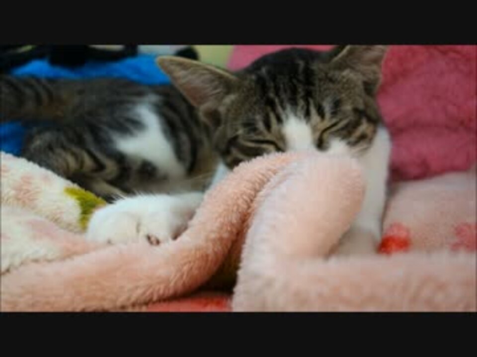 猫ミルキーの毛布もみもみ