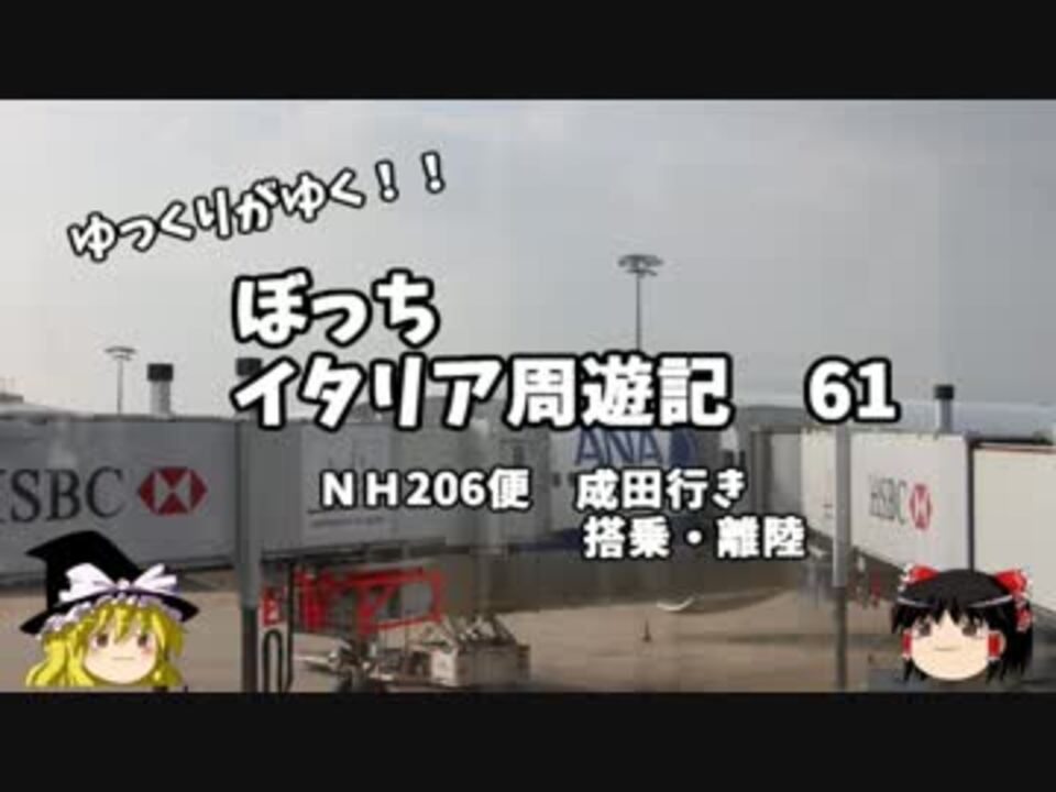 いよいよ飛行機に搭乗!!<br />さらば、パリ!<br />そしてラッキーなことに・・・・<br /><br /><br />1日目…出発編<br />2~4日目…ヴェネツィア編<br />5~7日目…ミラノ スイス編<br />8~10日目…ローマ 南イタリア編<br />11~12日目…帰路編<font color="red">←今ココ(11日目)</font><br /><br />たくさんのコメントありがとうございます!<br />2月中旬、完結予定 全64+1話で無駄に長いです!<br />旅ブログ→<a href="http://ryotaroo.blog.fc2.com/" target="_blank" rel="noopener nofollow">http://ryotaroo.blog.fc2.com/</a><br /><br /><br /><a href="https://www.nicovideo.jp/watch/sm25472331" class="watch">sm25472331</a>←前回 <font color="red">次回 第62話→<a href="https://www.nicovideo.jp/watch/sm25496967" class="watch">sm25496967</a></font><br />前作→<a href="https://www.nicovideo.jp/mylist/44343854" target="_blank" rel="noopener">mylist/44343854</a><br />今作→<a href="https://www.nicovideo.jp/mylist/45763559" target="_blank" rel="noopener">mylist/45763559</a>