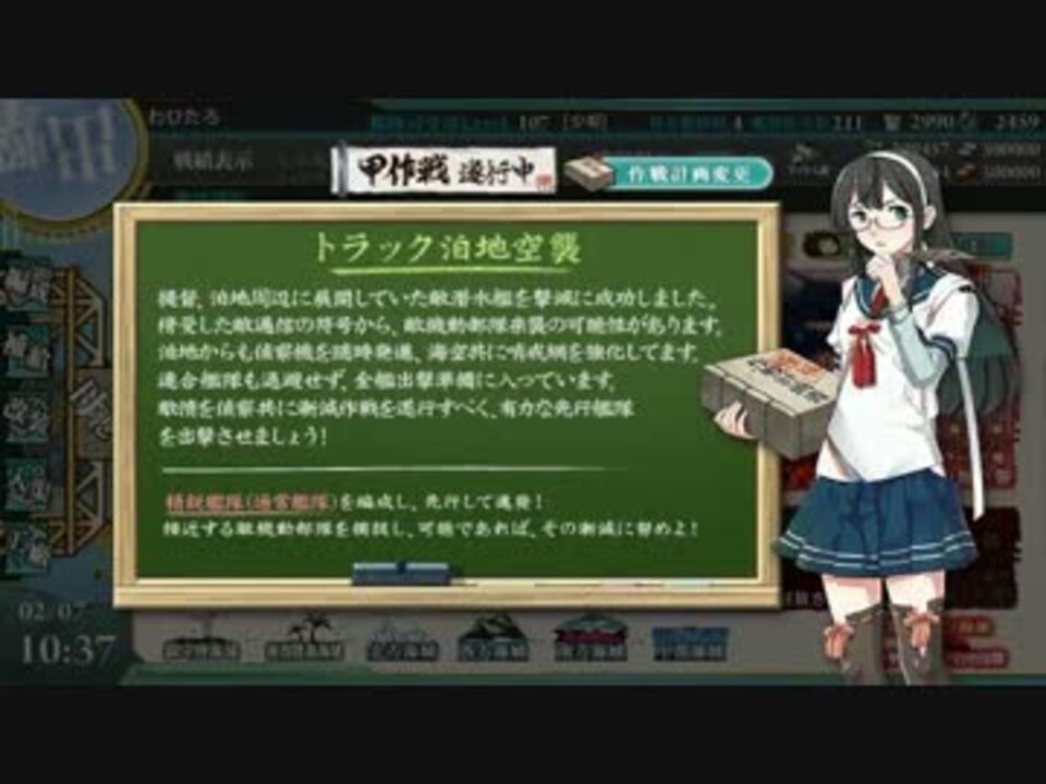 「迎撃!トラック泊地強襲」<br />(E-2)トラック泊地空襲<br /><br />まずは敵の戦力を冷静に分析し、様子を見ます。<br /><br />haru様、雷管提督様。<br />動画宣伝、感謝しております。<br /><br /><font size="3" color="navy">◆動画リンク◆</font><br />【前回】⇒<a href="https://www.nicovideo.jp/watch/sm25536424" class="watch">sm25536424</a>【Part384】⇒<a href="https://www.nicovideo.jp/watch/sm25551080" class="watch">sm25551080</a><br />【Part1】⇒<a href="https://www.nicovideo.jp/watch/sm21327178" class="watch">sm21327178</a><br />【艦これマイリスト】⇒<a href="https://www.nicovideo.jp/mylist/37778174" target="_blank" rel="noopener">mylist/37778174</a><br />【実況Part1マイリスト】⇒<a href="https://www.nicovideo.jp/mylist/39865405" target="_blank" rel="noopener">mylist/39865405</a>