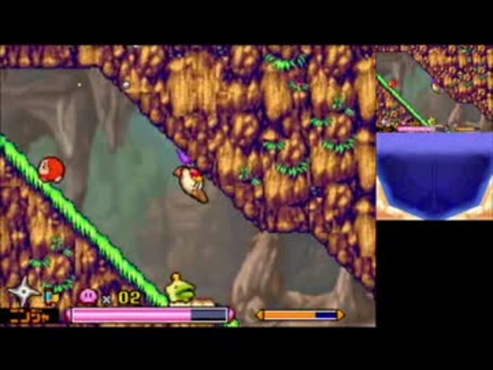 バレンタインドゥエーということでカービィにニンジャキックでいくつかのステージでドゥエをさせてみました。<s>二番煎じ</s><br />中ボス戦が厄介なため中ボスがいないステージを選んでいます。<br />~テクニック解説~<br />・崖際でスライディングした直後ホバリングすると、高速で移動ができる。実機でも可。<br />・しゃがんでいるときにダメージを受けるとコピーを失わない。<br />・ニンジャキック後そのまま爆炎の術(地上でB長押し)をすることでカービィが滑るので距離を稼げる。扉に入る直前にボォッと音がするのはそのため。<br />・ダッシュ中に十字キーの下を連打することによってカサカサと動ける。特に意味はない。<br />又、このゲームについての議論はしないで下さい。<br />投稿したもの<a href="https://www.nicovideo.jp/mylist/44476116" target="_blank" rel="noopener">mylist/44476116</a>