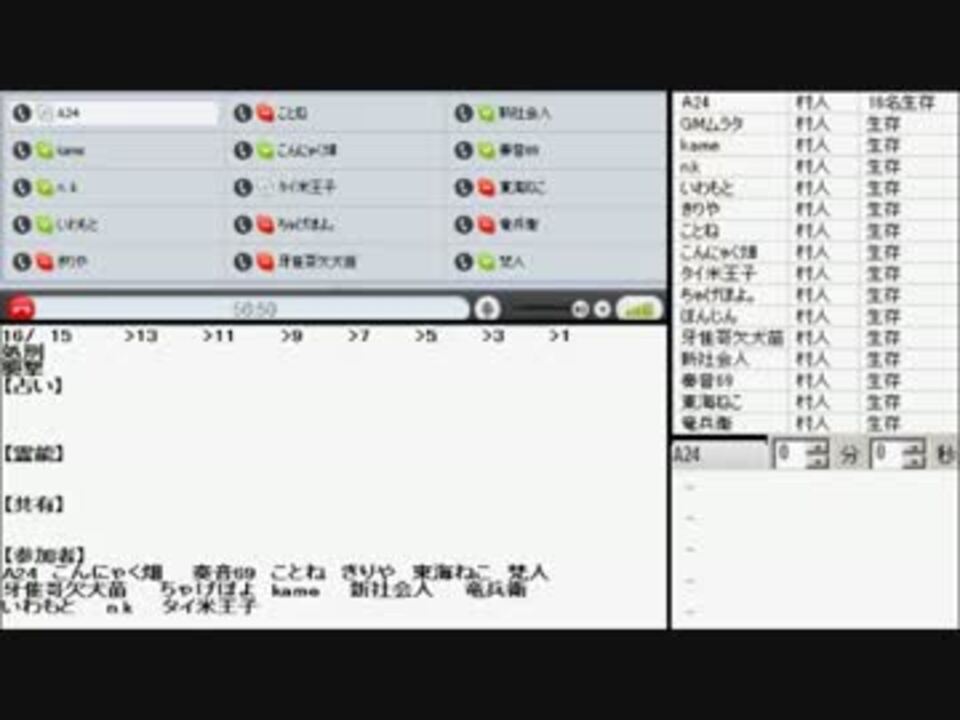 2/15 21:00~ にA24さんのコミュ(co132031)にて放送されたskype人狼練習枠です!<br /><br />|<a href="https://www.nicovideo.jp/mylist/48450654" target="_blank" rel="noopener">mylist/48450654</a>|次(part2)⇒<a href="https://www.nicovideo.jp/watch/sm25617801" class="watch">sm25617801</a><br /><br />コメ付きver⇒後日投稿予定<br /><br /><br />【参加者(敬称略)】<br />ムラタ(GM・放送)(co1845873)<br />A24(コミュ主)<br />こんにゃく畑(co103587)<br />奏音69(co2456075)<br />ことね(co1869461)<br />きりや<br />東海ねこ(co33073)<br />梵人(co1626716)<br />牙隹哥欠犬苗(ガカネコ) (co2154329)<br />ちゃげぽよ(co65934)<br />kame(co8541)<br />新社会人(co243598)<br />竜兵衛(co1895684)<br />いわもと(co1550093)<br />n.k(co2577430)<br />タイ米王子(co1687968)<br /><br /><br />人狼のルール:<a href="http://terakko.wix.com/skype-jinrou" target="_blank" rel="noopener nofollow">http://terakko.wix.com/skype-jinrou</a><br />skype人狼GMのやり方:<a href="https://www.nicovideo.jp/watch/sm25422611" class="watch">sm25422611</a><br />