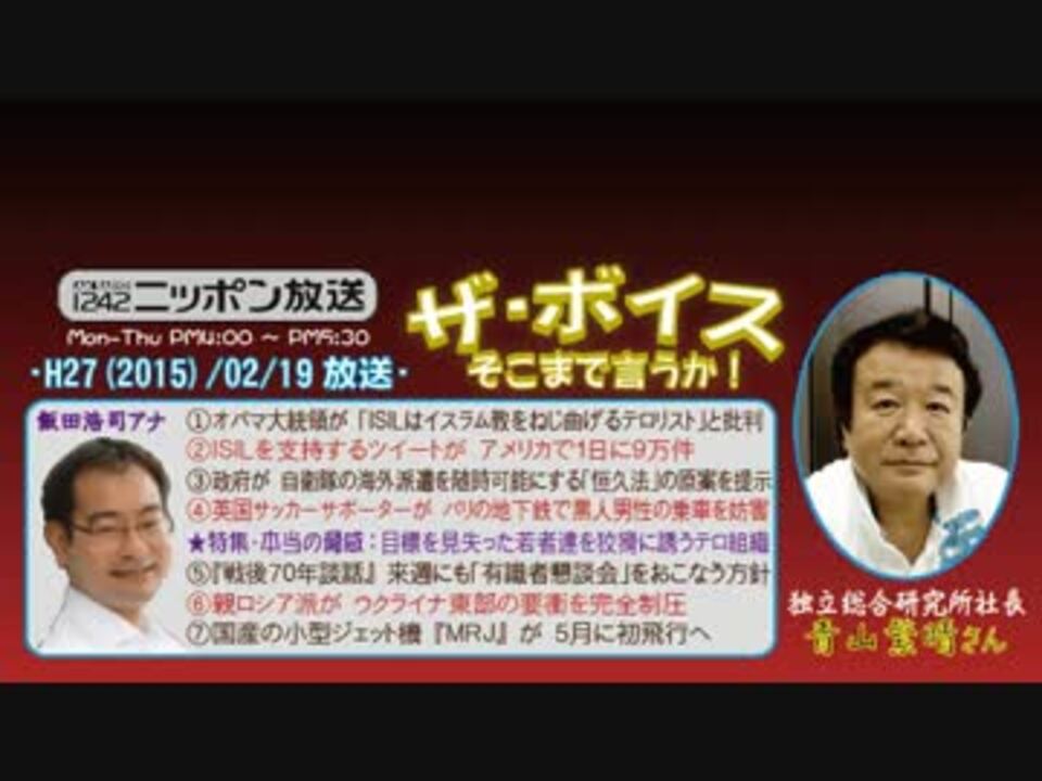いつも熱血な青山さんが専門分野「テロへのリスク」について語るとなれば、どれだけ時間押し押しになるのかと心配していたのですが、久々に前半戦で4本分を消化できるなど、思いのほかペース配分がよくてホッとしました(^^;<br />それと、全体的に重めのテーマながらも、最後に待望の国産ジェット機『MRJ』ネタを置いて希望の持てる締め方をするなど、スタッフの心配りも流石だなと思いました(^^<br /><br />なお、特集のところで、過去2回ほど語られた「地下鉄サリン事件について自衛官への聞き取り調査が行われていなかった!」ネタが三度出たのですが、常連リスナーばかりじゃないわけですし、大事なことなので~の精神にて、復習のつもりでお聴きください(^^;<br />※街ステ飛ばし→<a href="#" class="seekTime" data-seekTime="40:58" onclick="seekNicoPlayer('#40:58'); return false;">#40:58</a><br />□<a href="https://www.nicovideo.jp/mylist/36340069" target="_blank" rel="noopener">mylist/36340069</a>□<a href="https://www.nicovideo.jp/mylist/41644857" target="_blank" rel="noopener">mylist/41644857</a>