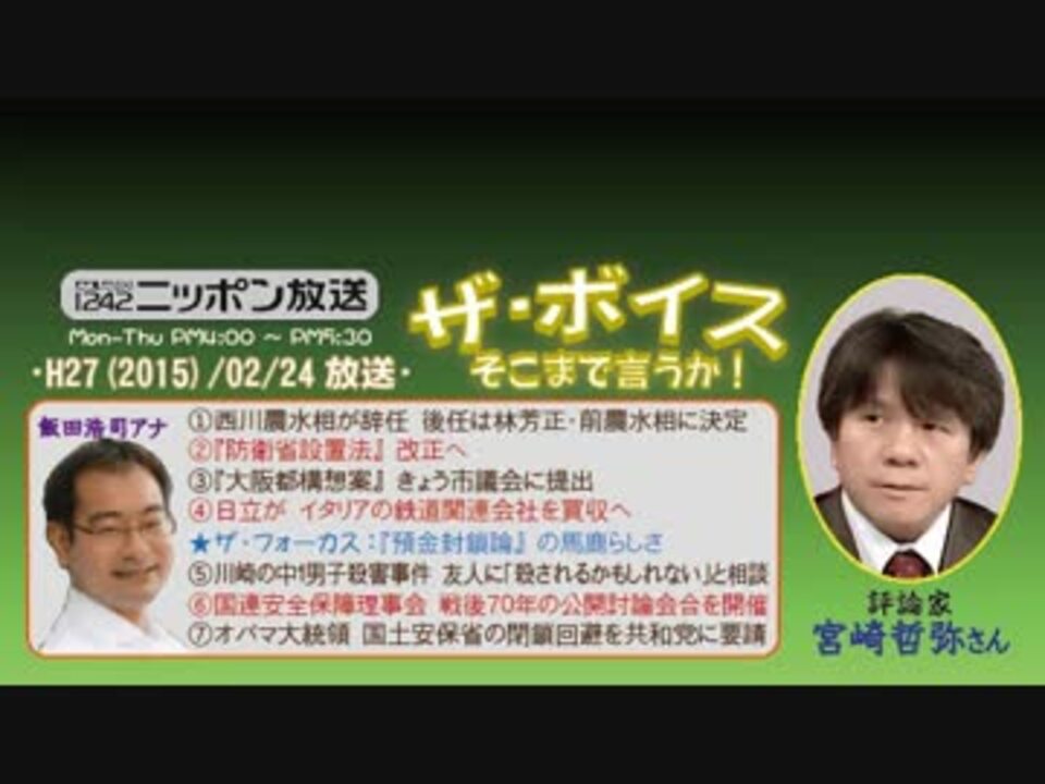 ご存じの通り、どんな論客にでもそつなく合わせられる飯田アナですが、私的に、一番肩の力が抜けていて"素"が出やすいのは、この宮崎さんの時だと思うんです(~って、いや別に、他の方が悪いとかいう話ではなくて^^;)。<br />そして、それは宮崎さんも同じなようで、例えば今回では、4本目でのじゃれ合い(笑)や『街ステ』での気さくなやり取りなど、本当に良い関係を築けているようで、聴いているだけで内容抜きに何だか楽しく(嬉しく)なるのは私だけでしょうか?!(^^ゞ<br /><br />今回、宮崎さんの口からも、改めて関西のTV番組『アンカー』の終了(打ち切り)が語られましたが、青山さんと同様、ぜひともこちらの方には、末永くご出演いただきたいものですね♪<br />※街ステ飛ばし→<a href="#" class="seekTime" data-seekTime="40:10" onclick="seekNicoPlayer('#40:10'); return false;">#40:10</a><br />□<a href="https://www.nicovideo.jp/mylist/36340069" target="_blank" rel="noopener">mylist/36340069</a>□<a href="https://www.nicovideo.jp/mylist/41644857" target="_blank" rel="noopener">mylist/41644857</a>