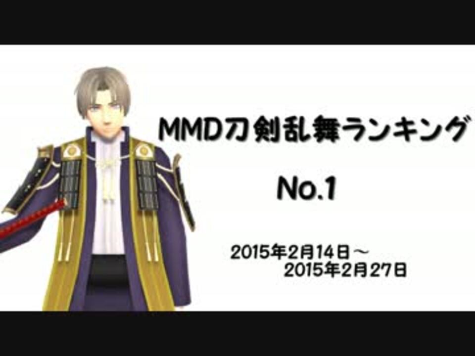 はじめまして<br /><br />MMD刀剣乱舞ランキングというものを作ってみました。<br />ただ自分が見たかっただけ&ランキング動画作成するのが初めてなのでいろいろと雑です。<br />それでもいいよという方はどうぞ。<br /><br /><br />2015年2月14日~2015年2月27日に投稿された動画が対象です。<br /><br />ランキングで紹介された動画→<a href="https://www.nicovideo.jp/mylist/49037785" target="_blank" rel="noopener">mylist/49037785</a><br />次→<a href="https://www.nicovideo.jp/watch/sm25732996" class="watch">sm25732996</a><br />刀剣乱舞ランキング→<a href="https://www.nicovideo.jp/mylist/49244997" target="_blank" rel="noopener">mylist/49244997</a><br /><br />追記:梅粥様、審神者様宣伝ありがとうございます!<br />追記2:MMD以外も入れてほしいというコメントが多いので、次回からは手描きや人力なども入れた二次創作全般のランキングにしたいと思います。<br /><br /><br />転載禁止<br />Reprint is prohibited.