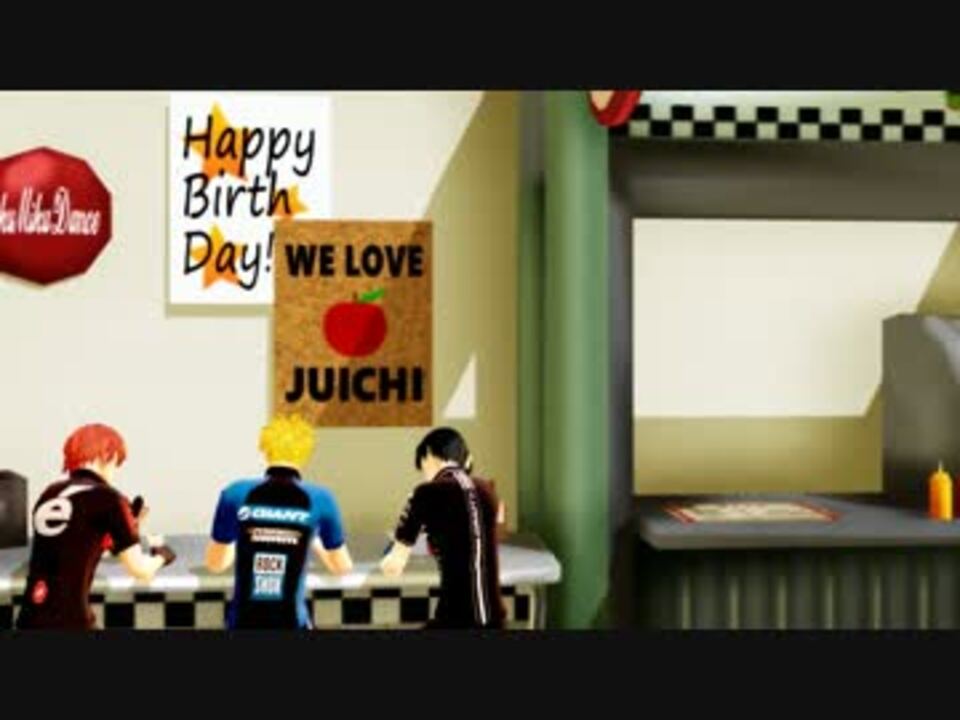 荒北「今日は福ちゃんの誕生日だ。振りは完璧だろうなァ?」<br /> 新開「アップルパイも用意したぜ」<br /> 荒北「俺は振りは大丈夫かって聞いてんだよ」<br /> 福富「踊る前に食べてはダメなのか」<br /> 荒北「やめといたほうがいいよォ。終わったら俺の分もあげるから」<br /> 福富「い、いいのか」<br /> 新開「ありがとよ、靖友」<br /> 荒北「新開にはねーよ」<br /> <br /> 福ちゃんお誕生日おめでとう!!!!<br /> 福富寿一誕2016はこちら→<a href="https://www.nicovideo.jp/watch/sm28340415" class="watch">sm28340415</a><br /> お借りしたものはコンテンツツリーに掲載しています。<br /> モーションは一部改変しております。<br /> 各製作者様に感謝いたします。<br /> <br /> <a href="https://www.nicovideo.jp/mylist/46590817" target="_blank" rel="noopener">mylist/46590817</a><br />3/3東堂尽八様、3/12福富寿一親衛隊様広告ありがとうございます!<br />11/30 新作です。こちらもよろしくお願いします。→<a href="https://www.nicovideo.jp/watch/sm30138188" class="watch">sm30138188</a>