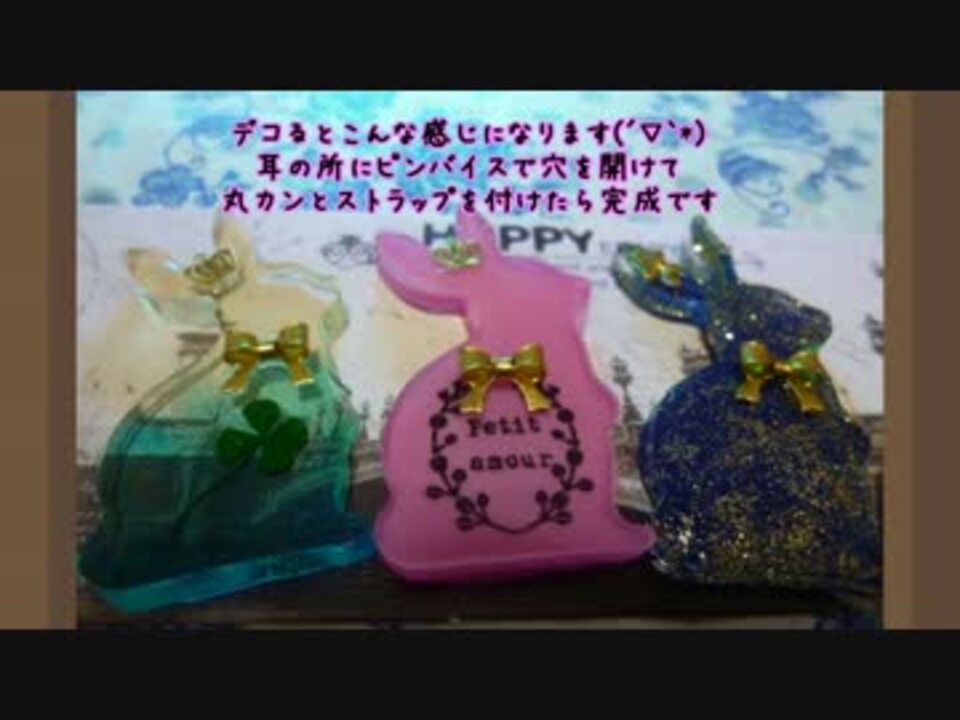 ウサギのシリコン型で<br />いろいろなタイプのストラップを作ってみました。<br /><br />minneにて一部販売中です(`・ω・´)ゞ<br /><a href="https://minne.com/nagisa1219" target="_blank" rel="noopener nofollow">https://minne.com/nagisa1219</a><br />封入するものや、色によって様変わりする<br />ウサギちゃんをご覧ください(`・ω・´)ゞ<br /><br />今までの動画<br />アリス系ストラップ⇒<a href="https://www.nicovideo.jp/watch/sm25676493" class="watch">sm25676493</a><br />ベイマックス ⇒<a href="https://www.nicovideo.jp/watch/sm25708836" class="watch">sm25708836</a><br />香水瓶と歯車 ⇒<a href="https://www.nicovideo.jp/watch/sm25737829" class="watch">sm25737829</a><br />パンダ ⇒<a href="https://www.nicovideo.jp/watch/sm25763692" class="watch">sm25763692</a><br /><br />ツイッター⇒<a href="https://twitter.com/nagisa_mate" target="_blank" rel="noopener nofollow">https://twitter.com/nagisa_mate</a>