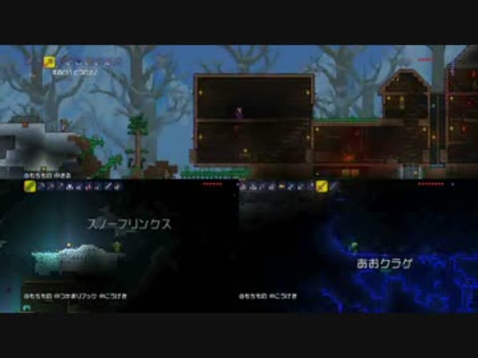いい大人達がPS4版「テラリア」のハードモードを目指して本気で遊んでみました。<br />本人達は至って本気でプレイしておりますが、腕前の方はお察し下さい。<br /><br />本編動画はこちら(ハードモードでの実況)→<a href="https://www.nicovideo.jp/watch/sm25540188" class="watch">sm25540188</a><br /><br />登場人物:いつも愉快なタイチョー、紅一点マオー<br />歳はみんなと同じだけどオッサン<br /><br />(ご注意!)タイチョーが絶叫している箇所が多々あります。音量にご注意ください。<br /><br />テラリア公式サイト⇒<a href="http://www.spike-chunsoft.co.jp/terraria/" target="_blank" rel="noopener nofollow">http://www.spike-chunsoft.co.jp/terraria/</a><br /><br />前→<a href="https://www.nicovideo.jp/watch/sm25730599" class="watch">sm25730599</a> 次→<a href="https://www.nicovideo.jp/watch/sm25767426" class="watch">sm25767426</a> これまでの実況→<a href="https://www.nicovideo.jp/mylist/17828031" target="_blank" rel="noopener">mylist/17828031</a> ラジオ→<a href="https://www.nicovideo.jp/mylist/28752088" target="_blank" rel="noopener">mylist/28752088</a>