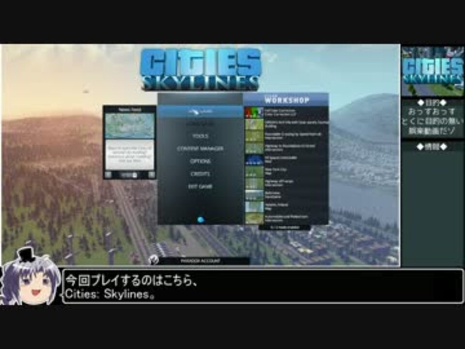 初ワシじゃよなので初投稿です。<br />2015年3月10日発売の都市開発シミュレーションゲーム<br />マップエディタ・施設エディタ・MOD機能などがある<br />Cities: Skylines(シティーズ スカイラインズ)のプレイ動画です。<br />販売Paradox<br /><br />MOD使用:なし プレイマップ:初期一番上<br />廃墟自動撤去MODを今後導入予定<br /><br />Q.2×2で4km2なのでは?<br />A.おっそうだな(小並<br /> 初期上限36km2<br /> MOD開放100km2(25タイル)<br /><br />プレイ環境<br />Win7 i7 870 2.93Ghz メモリ12GB Radeon R7 265(2GB)<br /><br />宣伝アリシャス!<br /><br />紹介動画<a href="https://www.nicovideo.jp/watch/sm25760672" class="watch">sm25760672</a> その2<a href="https://www.nicovideo.jp/watch/sm25781221" class="watch">sm25781221</a><br />CSSシリーズ <a href="https://www.nicovideo.jp/mylist/49209435" target="_blank" rel="noopener">mylist/49209435</a><br />投稿動画パート1<a href="https://www.nicovideo.jp/mylist/41918729" target="_blank" rel="noopener">mylist/41918729</a><br />作った動画全部 <a href="https://www.nicovideo.jp/mylist/42963985" target="_blank" rel="noopener">mylist/42963985</a><br />