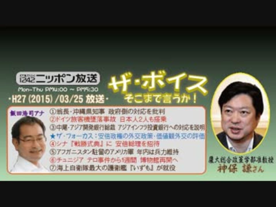 今回のゲストは、番組初登場! 片岡さんに続く今年2人目のニューフェイス、慶応大学総合政策学部准教授の神保謙(じんぼ けん)さんです!<br /><br />……と、私的に全く知らなかった御方で、かつ、慶大准教授の肩書きの他に『キヤノングローバル戦略研究所(CIGS)』の主任研究員であり、あの私の苦手な宮家邦彦さんと同室だということから、正直、少し警戒心を持ちながら聴いていたのですが、とても普通な言説ばかりでホッとしました(^^;<br /><br />ただ、全般的に「そこまで言うか!」な主張よりも「解説員」的な論調が多いのは、好みが分かれそうですね。でも最近、この番組が「右派」だと勘違いしている人が目につくのでw、私的にはありがたいなと思いました(^^<br />※街ステ飛ばし→<a href="#" class="seekTime" data-seekTime="38:23" onclick="seekNicoPlayer('#38:23'); return false;">#38:23</a><br />□<a href="https://www.nicovideo.jp/mylist/36340069" target="_blank" rel="noopener">mylist/36340069</a>□<a href="https://www.nicovideo.jp/mylist/41644857" target="_blank" rel="noopener">mylist/41644857</a>