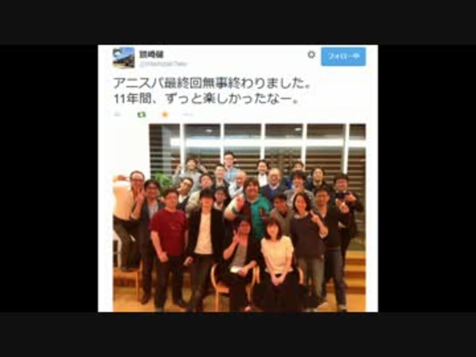 一部の曲とCMカット 92kpbs<br /><font size="7"><s>コナミ回</s> <font color="red">最終回</font></font><br />11年間お疲れ様、そしてありがとう!うp主は仕事しながら最終回を堪能しました。<br />偶然録れてたこむちゃのフリートーク部分もついでに入ってます。<br />もう再エンコは嫌なのでミス見つけてもスルーしてください。<font size="1">パトラッシュ僕もう疲れたよ…</font><br /><br /><a href="https://www.nicovideo.jp/mylist/49111784" target="_blank" rel="noopener">mylist/49111784</a><br /><br />アニスパ関係者最終回ツイートまとめ <u><font color="blue"><a href="http://togetter.com/li/801008" target="_blank" rel="noopener nofollow">http://togetter.com/li/801008</a></font></u>