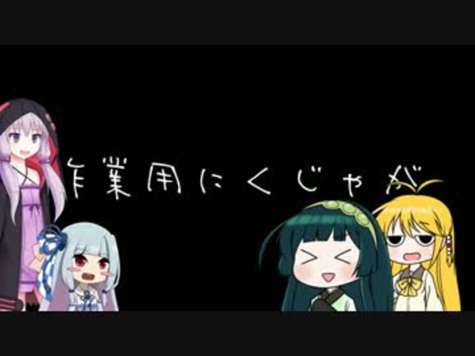 <br />前回の動画を作業用に使っている方が何人かいるようでしたので<br />作業用を作ってみました。出来心でやった。後悔はしていない。<br /><br />にくじゃが教の野望:<a href="https://www.nicovideo.jp/watch/sm26067623" class="watch">sm26067623</a><br />にくじゃがの元:<a href="https://www.nicovideo.jp/watch/sm25896148" class="watch">sm25896148</a><br /><br />ゆかりさん立ち絵:<a href="https://seiga.nicovideo.jp/seiga/im4305089" target="_blank" rel="noopener">im4305089</a><br />マキマキ立ち絵:<a href="https://seiga.nicovideo.jp/seiga/im4608092" target="_blank" rel="noopener">im4608092</a><br />ずん子立ち絵:<a href="https://seiga.nicovideo.jp/seiga/im4654903" target="_blank" rel="noopener">im4654903</a> <br />琴葉姉妹立ち絵:<a href="https://seiga.nicovideo.jp/seiga/im3998764" target="_blank" rel="noopener">im3998764</a><br /><br />ツイッター→@dorobonuko
