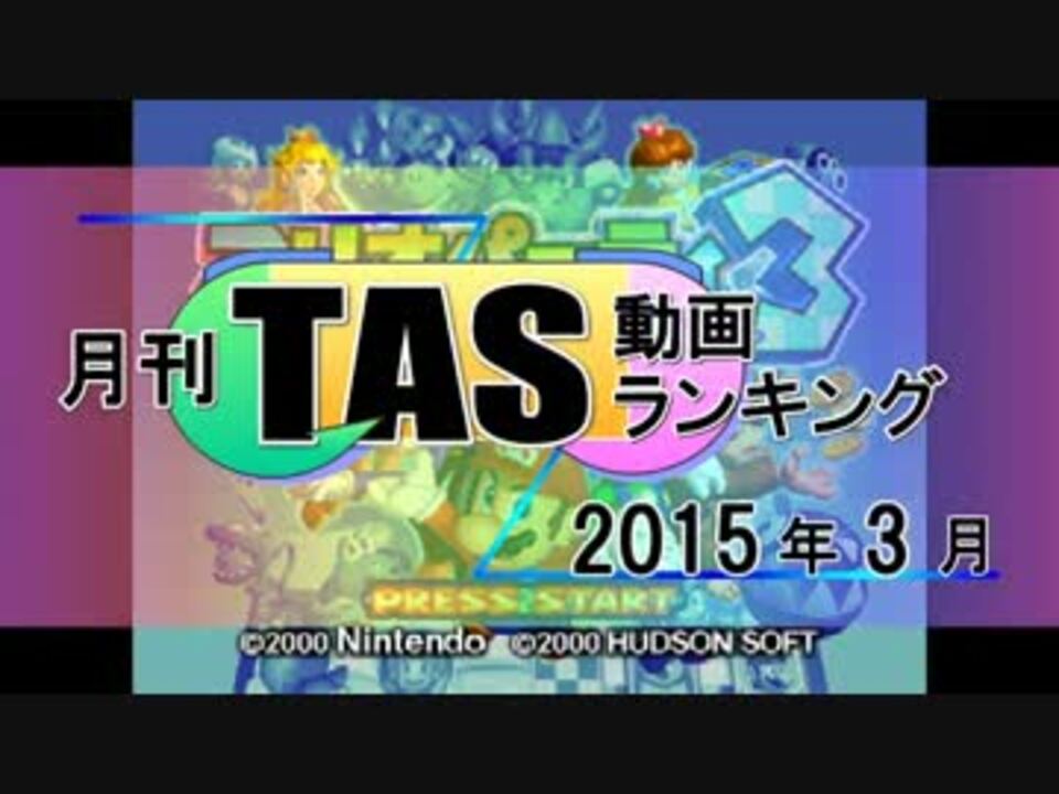 新学期もTAS動画で桜満開!<br><br>※TASと関係のない動画が投稿されている件ですが、<a href="https://ch.nicovideo.jp/article/ar504036" target="_blank" rel="noopener">ar504036</a>に対策を載せています。<br><br>集計日時:2015年4月5日23時59分<br>集計対象:2015年3月1日~2015年3月31日の間に投稿された動画。<br>集計結果:この動画の大百科をご覧下さい。 総合バックナンバー:<a href="https://www.nicovideo.jp/mylist/37739083" target="_blank" rel="noopener">mylist/37739083</a><br>2月号:<a href="https://www.nicovideo.jp/watch/sm25756961" class="watch">sm25756961</a> | 4月号:<a href="https://www.nicovideo.jp/watch/sm26225438" class="watch">sm26225438</a><br><strong>ユーザーニコ割によるジャンプを導入しております。<br>ご入用の方は<a href="#" class="seekTime" data-seekTime="1:02" onclick="seekNicoPlayer('#1:02'); return false;">#1:02</a>~のボタンを押して下さい。<br>※TASランでは制作のお手伝いを募集しております。<br> 詳細はこちら → <a href="https://ch.nicovideo.jp/article/ar282358" target="_blank" rel="noopener">ar282358</a></strong>