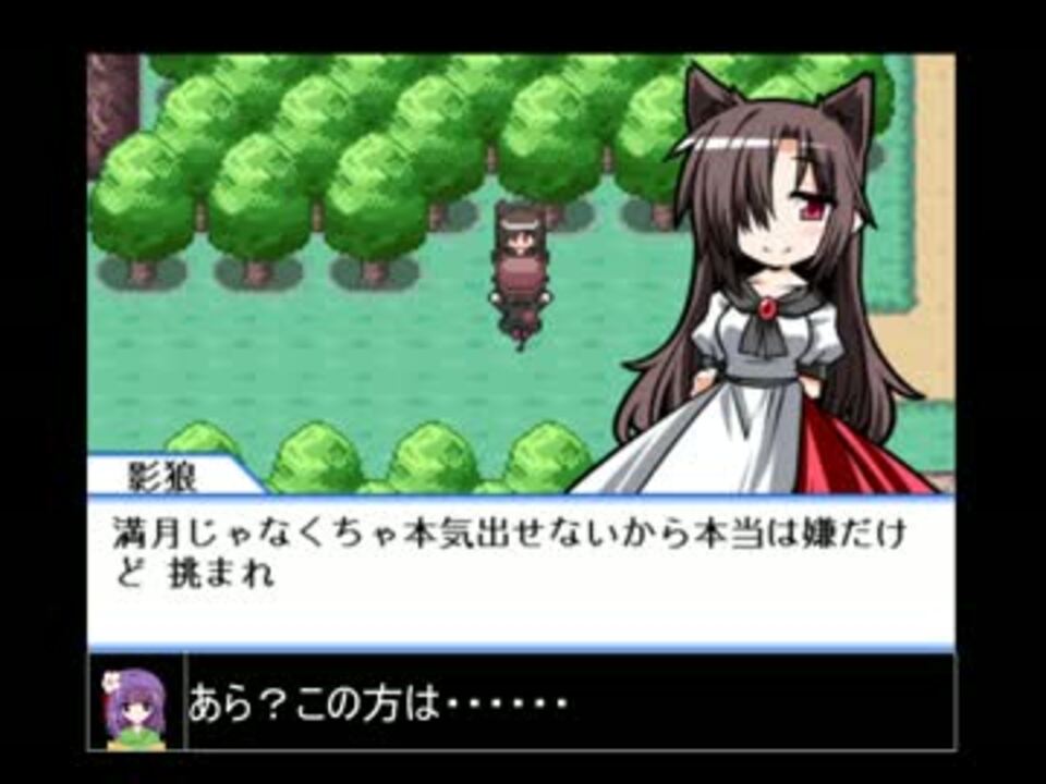 第八話目出来ました。<br /><br />今回もストーリーが殆ど進みません。<br />次回からは竹林に突入できますが。<br />まぁ、進んでない理由はやっぱり命蓮寺への寄り道が大きかったですね。<br />とはいえ、ストーリー手順で行くと命蓮寺に行くのは相当後になるので、<br />その時に出て来るとレベル差がえげつないのと、<br />この時点でこの人形を捕まえられますよ。というのを見せたかったので。<br /><br />後、メイン二人のお楽しみは磁界という事で。<br />・・・・・・砂糖タイムじゃないですよ?<br /><br />次><a href="https://www.nicovideo.jp/watch/sm26100444" class="watch">sm26100444</a><br />前><a href="https://www.nicovideo.jp/watch/sm26001470" class="watch">sm26001470</a><br />マイリスト><a href="https://www.nicovideo.jp/mylist/48376171" target="_blank" rel="noopener">mylist/48376171</a><br />過去作><a href="https://www.nicovideo.jp/mylist/48033638" target="_blank" rel="noopener">mylist/48033638</a>