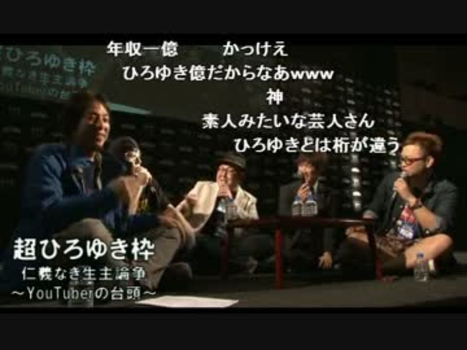 人は好きなことで生きていけるのか、YouTuber・キャス主の台頭に生主はなにを思うのか。<br />ニコニコ超会議一、カオスで真面目な徹底討論!<br /><br />【出演者】<br />ひろゆき<br />横山緑 (暗黒黙示録)<br />石川典行 (石川典行のノリユキラジオ)<br />KAZUYA (KAZUYA CHANNEL GX)<br />エッグ矢沢(エッグ矢沢 YouTubeチャンネル)<br /><br />2015/04/26(日) 開演:12:00<br />超言論エリア 超生主討論~電王戦討論まで@ニコニコ超会議2015[DAY2]<br />番組ID:<a href="https://live.nicovideo.jp/watch/lv217016412" target="_blank" rel="noopener">lv217016412</a><br />1/2→<a href="https://www.nicovideo.jp/watch/sm26112353" class="watch">sm26112353</a><br />2/2→<a href="https://www.nicovideo.jp/watch/sm26134021" class="watch">sm26134021</a><br />