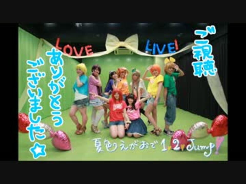 <font size="6">♡We love LOVELIVE!!♡</font><br /><br /><br /><b>2013/04/02 投稿<br />2015/04/29 再アップ!</b><br />穂乃果☆おぱんちゅハチ <a href="https://www.nicovideo.jp/mylist/11548467" target="_blank" rel="noopener">mylist/11548467</a><br />ことり☆綺-Aya- aya00rei00 <a href="https://www.nicovideo.jp/mylist/32275800" target="_blank" rel="noopener">mylist/32275800</a><br />海未☆しぐれ shigure141 <a href="https://www.nicovideo.jp/mylist/19371007" target="_blank" rel="noopener">mylist/19371007</a><br />絵里☆愛乃 34baumu<br />希☆鎖骨<br />にこ☆とこまゆげ mayugetoko <br />凛☆へちゃむ<br />花陽☆エース<br />真姫☆莉夢<br /><br />撮影・編集 ブルさん<br /><br />妙’sのコミュ co2203879 マイリス <a href="https://www.nicovideo.jp/mylist/39224215" target="_blank" rel="noopener">mylist/39224215</a> Twitter @myo_s_lovelive<br /><font color="red">本動画の無断転載・2次利用は禁止します。</font><br />
