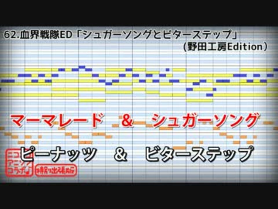 <font color="red" size="5"><b>★ガイドメロ無カラオケ/MIDI/コード配布中!<br /><a href="http://bit.ly/1VDZreA" target="_blank" rel="noopener nofollow">http://bit.ly/1VDZreA</a></font></b><br /><br /><b>◆原曲:</b>シュガーソングとビターステップ(UNISON SQUARE GARDEN)<br /><b>◆企画・打ち込み:</b>野田工房P <a href="https://www.nicovideo.jp/mylist/15625161" target="_blank" rel="noopener">mylist/15625161</a>(@nodakoubou)<br /><br /><b>■アニソンOP/EDカラオケ(打ち込み版)</b><br />56.俺ガイルOP <a href="https://www.nicovideo.jp/watch/sm25979518" class="watch">sm25979518</a><br />57.うたプリED <a href="https://www.nicovideo.jp/watch/sm26002345" class="watch">sm26002345</a><br />58.Fate OP <a href="https://www.nicovideo.jp/watch/sm26005750" class="watch">sm26005750</a><br />59.ニセコイOP <a href="https://www.nicovideo.jp/watch/sm26057057" class="watch">sm26057057</a><br />61.銀魂4期OP <a href="https://www.nicovideo.jp/watch/sm26059006" class="watch">sm26059006</a><br />62.なのはViVid OP <a href="https://www.nicovideo.jp/watch/sm26171243" class="watch">sm26171243</a><br />63.血界戦線ED <a href="https://www.nicovideo.jp/watch/sm26148538" class="watch">sm26148538</a><br />64.ハイスクールDxD BorN OP <a href="https://www.nicovideo.jp/watch/sm26173331" class="watch">sm26173331</a><br />65.境界のRINNE OP <a href="https://www.nicovideo.jp/watch/sm26176355" class="watch">sm26176355</a><br />66.てーきゅうOP <a href="https://www.nicovideo.jp/watch/sm26182253" class="watch">sm26182253</a><br />67.山田くんと7人の魔女OP <a href="https://www.nicovideo.jp/watch/sm26193875" class="watch">sm26193875</a><br />68.アルスラーン戦記ED <a href="https://www.nicovideo.jp/watch/sm26196552" class="watch">sm26196552</a><br />69.うたプリOP <a href="https://www.nicovideo.jp/watch/sm26356071" class="watch">sm26356071</a><br /><br /><font color="red" size="5"><b>★アニソンカラオケ一覧はこちら<br /><a href="http://bit.ly/1Gw9EgX" target="_blank" rel="noopener nofollow">http://bit.ly/1Gw9EgX</a></b></font>
